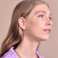 Delicate, unique and versatile for styling. Introducing Elaina Dainty CZ Twin Hoop Earrings (Gold) - a chic everyday style ear love for lovers of fine styles. This design features twin hoop style earrings joined at the top and embellished with inlaid cubic zirconias, giving the earrings a subtle diamante shine. The earrings are made in solid sterling silver with 18K gold plating, making them durable, comfortable and hypoallergenic to wear. Perfect for modern, retro, dainty, chic, minimalist, earring layering, smart casual, casual, everyday styles and more. Also suitable for kids and teens. Hypoallergenic, nickel, cadmium and lead free.
