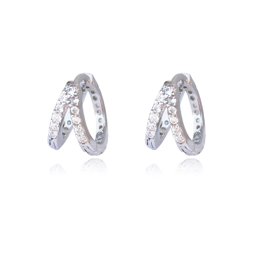 Delicate, unique and versatile for styling. Introducing Elaina Dainty CZ Twin Hoop Earrings (Silver) - a chic everyday style ear love for lovers of fine styles. This design features twin hoop style earrings joined at the top and embellished with inlaid cubic zirconias, giving the earrings a subtle diamante shine. The earrings are made in solid sterling silver, making them durable, comfortable and hypoallergenic to wear. Perfect for modern, retro, dainty, chic, minimalist, earring layering, smart casual, casual, everyday styles and more. Also suitable for kids and teens. Hypoallergenic, nickel, cadmium and lead free.