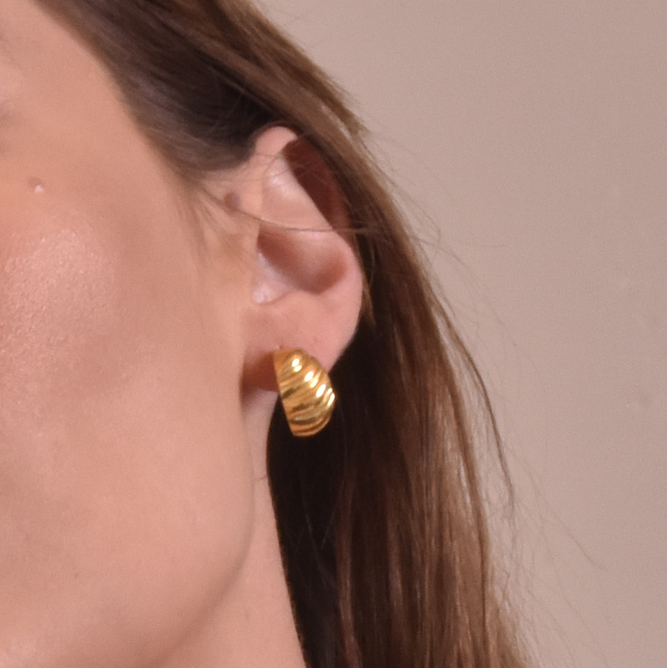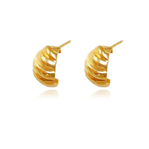 On trend chicness with a vintage-inspired twist. Introducing Elayne Gold Vermeil Croissant Earrings — an adorable and durable ear love for your timeless styling. This design is crafted in solid sterling silver with a 2.5 microns of rolled 18K gold, ensuring a thick gold bond with a polished rich shine that is also tarnish resistant. A versatile ear delight that is ethically crafted for lifelong keeping. Perfect for modern, vintage, chic, minimalist, punk, Parisian, feminine, smart casual and everyday styles. Hypoallergenic, nickel, cadmium and lead free.