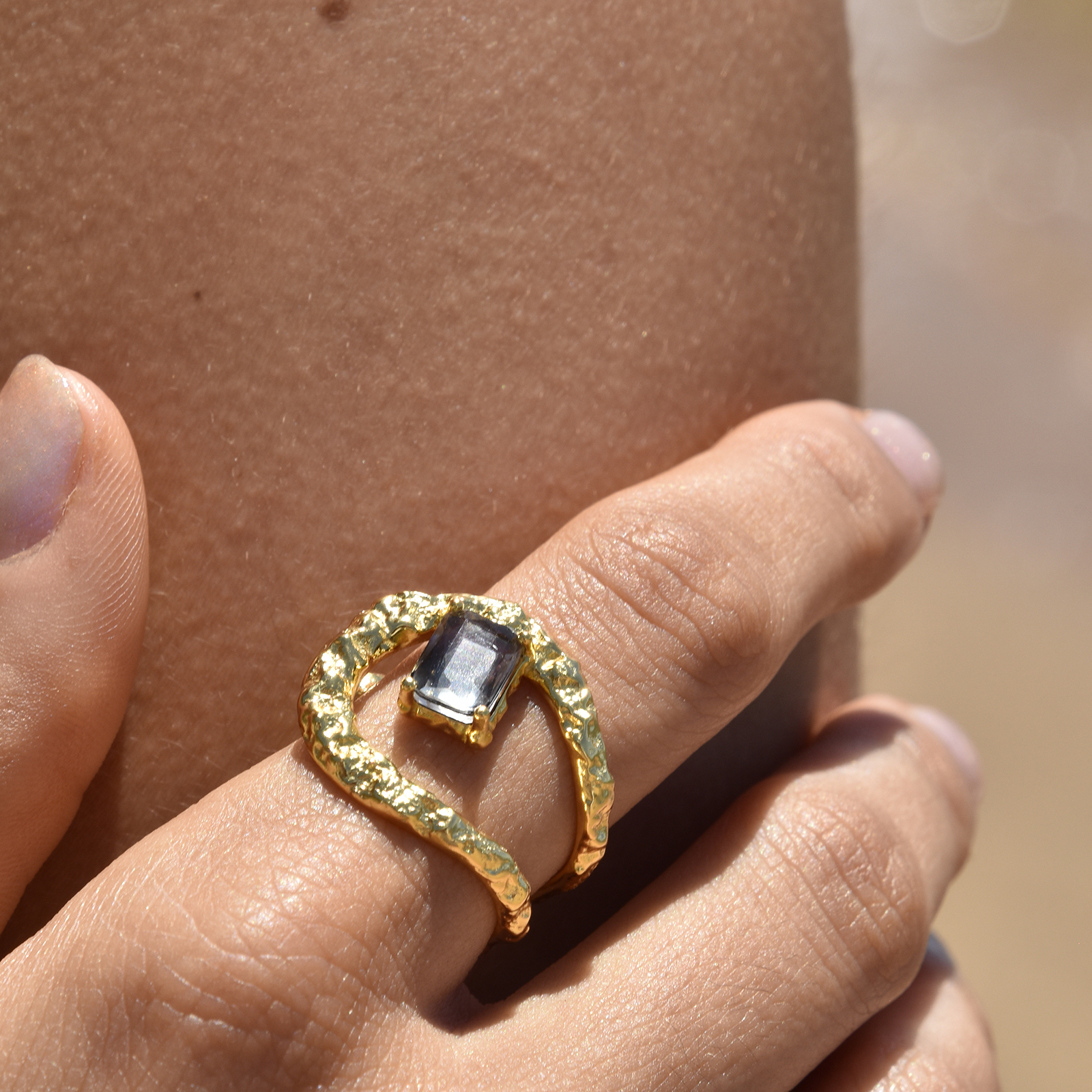 Artistic, eye-catching and unique. Introducing Eldora Artsy Wrap Open Ring (Gold Vermeil) - an art deco style finger beauty for lovers of uniqueness and style. This design features a twin line open ring forming a wrap that is taller and wider at the front and tapes off towards the bottom. This ring is crafted in solid sterling silver with 2.5 microns of high quality 18k gold plating (heavily gold plated to Gold Vermeil Jewellery Standards) with a zircon stone mounted at the top. A stylish and creative statement that embodies creativity and self expression. Due to the softness of solid sterling silver, this ring can be easily adjusted manually for the best fit. Perfect for modern, artsy, minimalist, coastal, high fashion, creative styling, smart causal, casual styles and more. Great for a unique gift to those who appreciate high quality and styles. Hypoallergenic, nickel, cadmium and lead free.