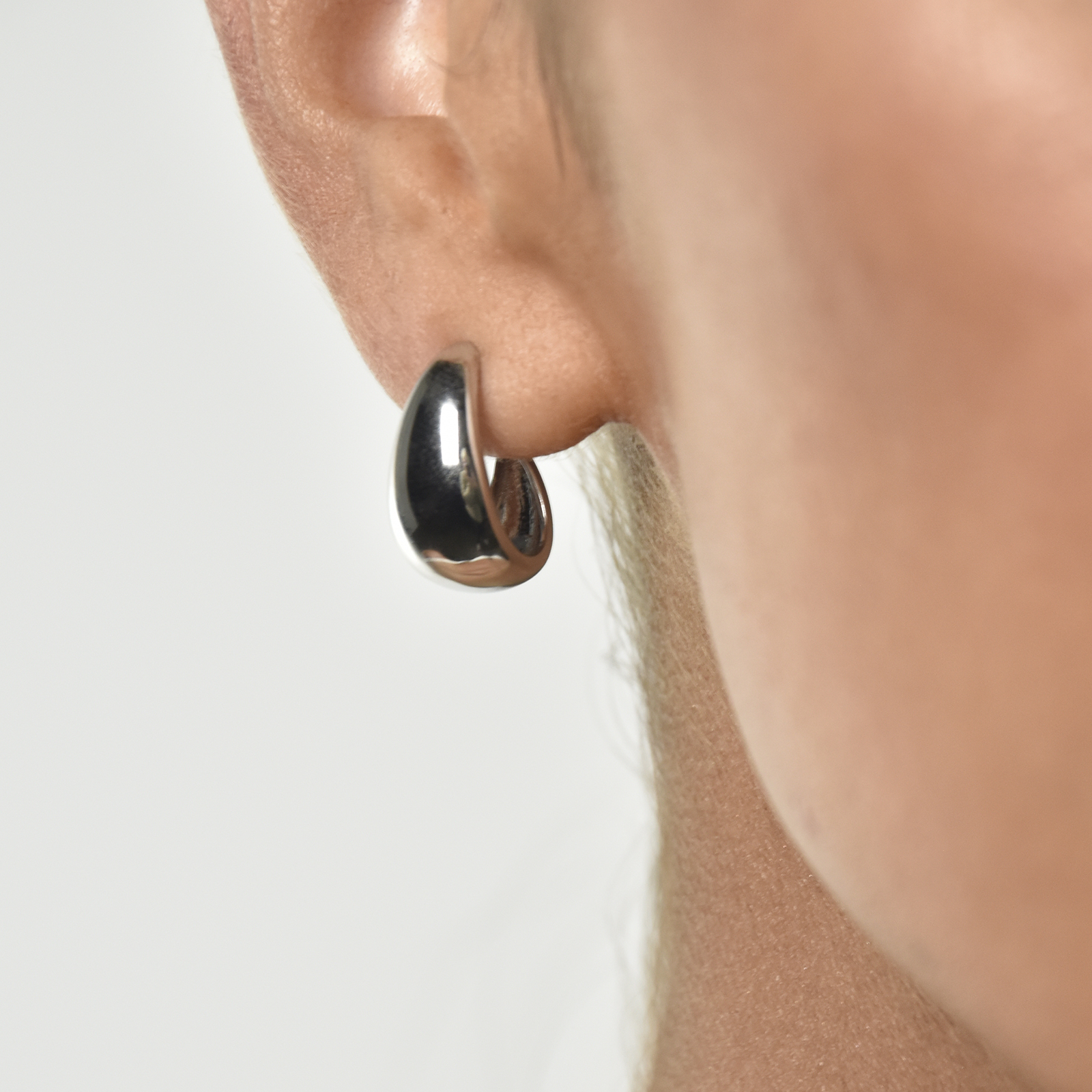 Modern simplicity with a classy shape and shiny finish. Introducing Elea Modern Teardrop Earrings (Silver) - a contemporary style ear love for a timeless and elegant touch. This design features teardrop shaped stud earrings smoothly polished to a reflective high shine. The earrings are made in solid sterling silver with rhodium plating to ensure hypoallergenic wear, durability and an extra anti-tarnish protection. The sleek shape and finish make it a perfect and subtle styling touch for modern, chic, minimalist, smart casual, casual, earring layering and everyday style. Hypoallergenic, nickel, cadmium and lead free.