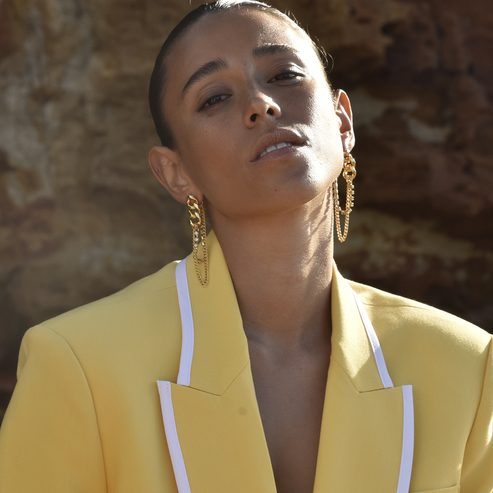 Behold the chain of love, combining all below and all above. Introducing Elektra Diamante Chain Drop Earrings - a contemporary avant-garde chain ear love for style and statement makers. This design features solid cuban chain links attached to a fine gold chain and a diamante chain, forming a loop closure joined at the earring backs. The earrings are made in environmentally friendly brass with 18K gold plating, evenly plated and smoothly polished to premium jewellery standards. A striking statement for those who appreciate uniqueness and high quality. Hypoallergenic, nickel, lead, and cadmium free.