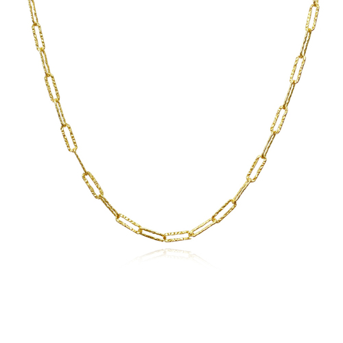 Modern fine chain style enriched with textures. Introducing Elijah Textured Link Chain Necklace (Gold Vermeil) - a textual-inspired contemporary chain made to last a lifetime. This design features a 47cm long oval link chain made in solid sterling silver and 2.5 microns of high quality 18K gold plating (to Gold Vermeil Jewellery and Premium Jewellery Standards). A timeless and versatile neckpiece perfect for modern, chic, punk, minimalist, necklace layering, smart casual, casual, everyday style and more. Hypoallergenic, nickel, cadmium and lead free.