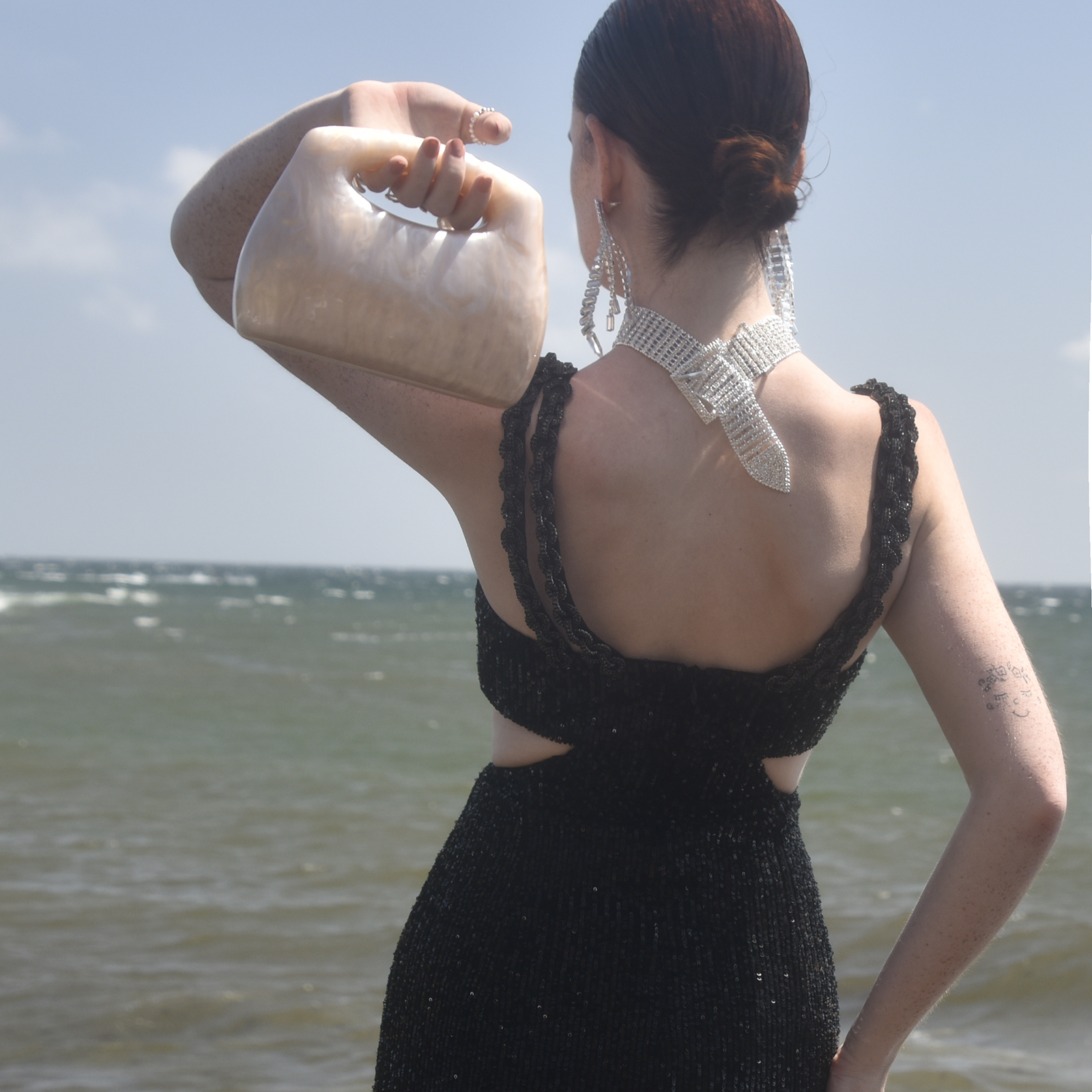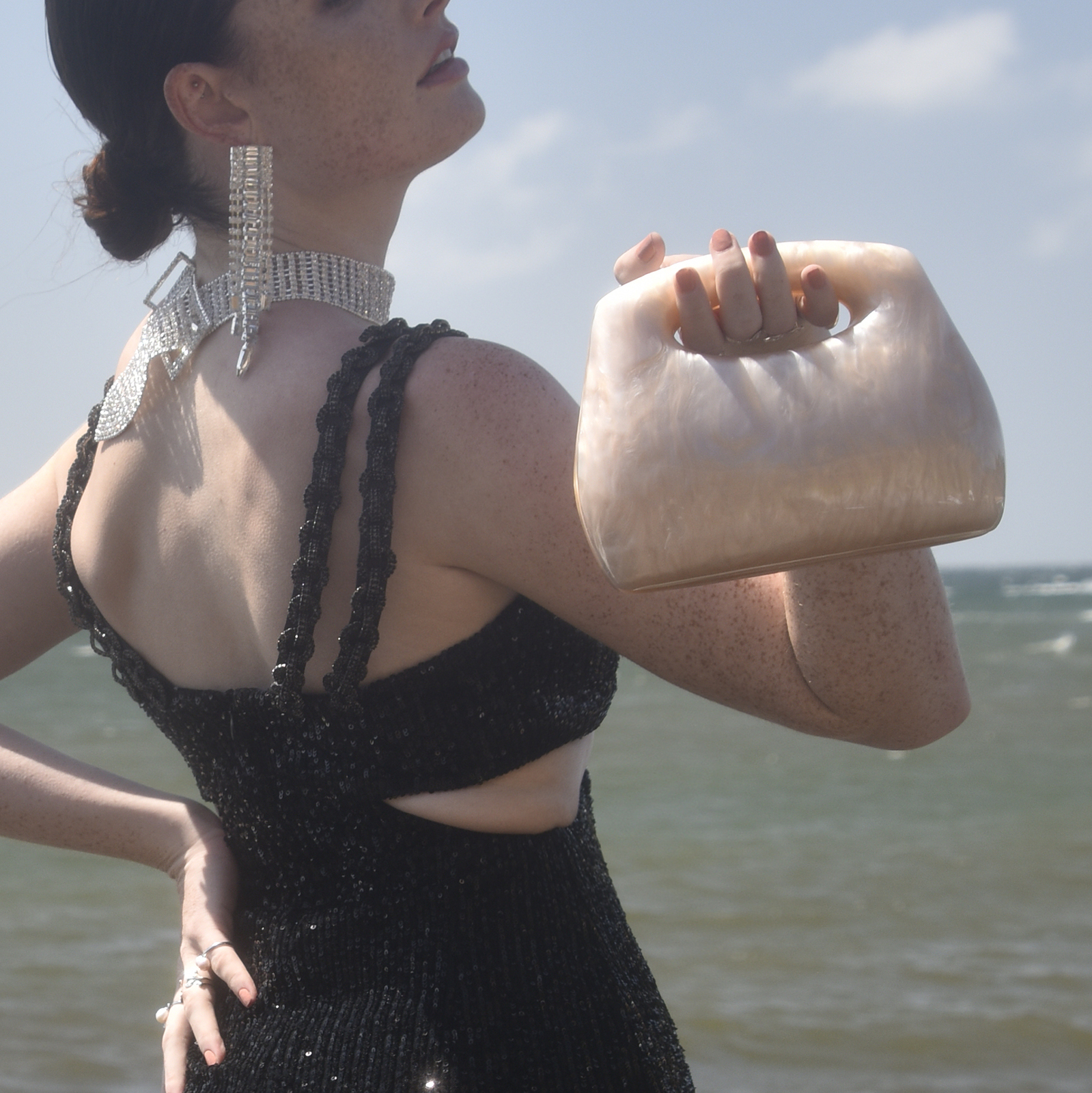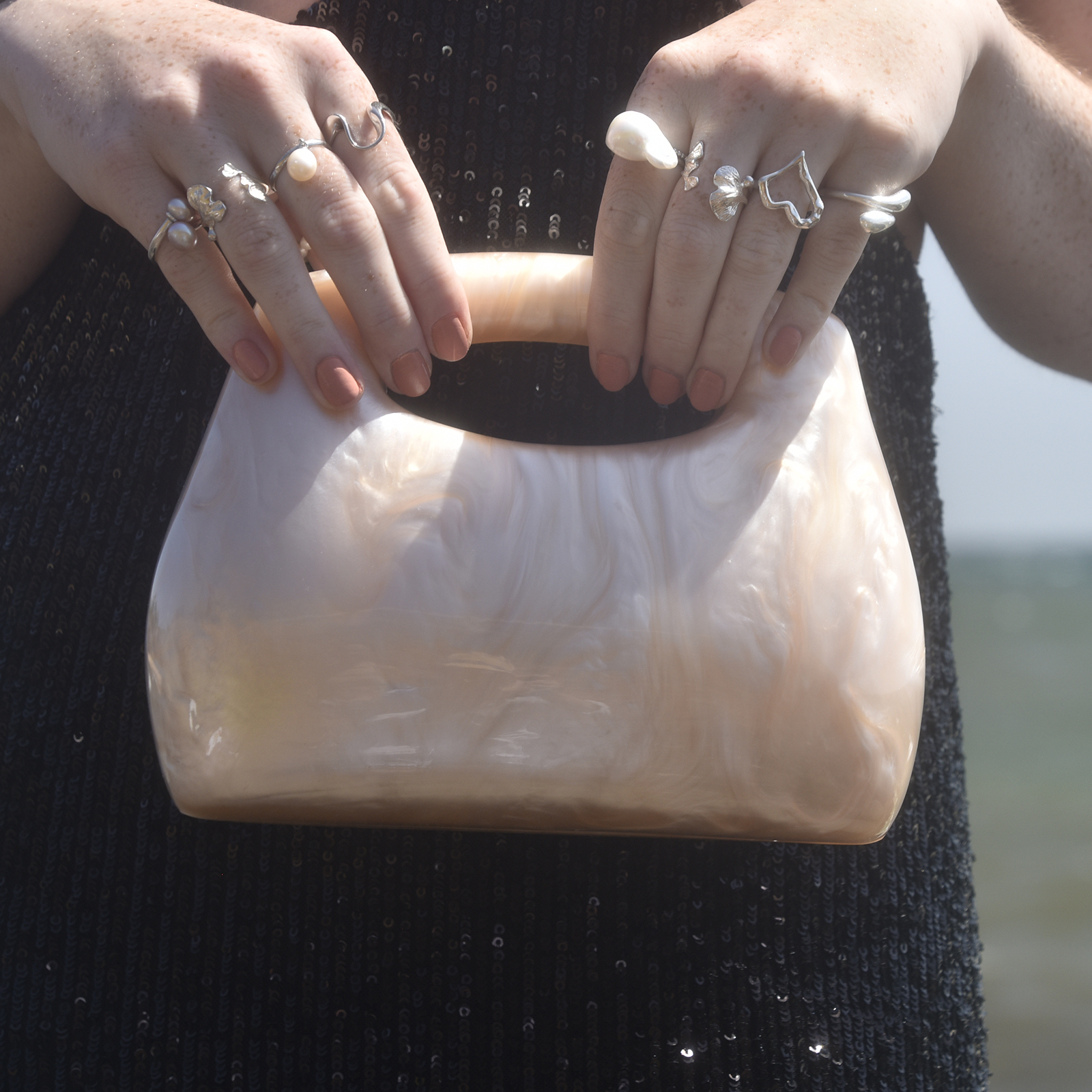 Chic, adorable, unique with creativity in the air. Introducing Elka Artsy Resin Clutch (Nude Shimmer) - a contemporary style resin bag that is hard to take your eyes off. This design features a smooth-edged rectangular clutch bag with a nude beige shimmer, making it an eye-catching and artsy accessory for your elevated high fashion styling. It comes in four different colours: pearl white, lemon, emerald green and nude shimmer. An unforgettable modern statement perfect for formal, semi-formal, racing, dressy, feminine, girly, creative, high fashion, fashion events, smart casual, casual style and more.