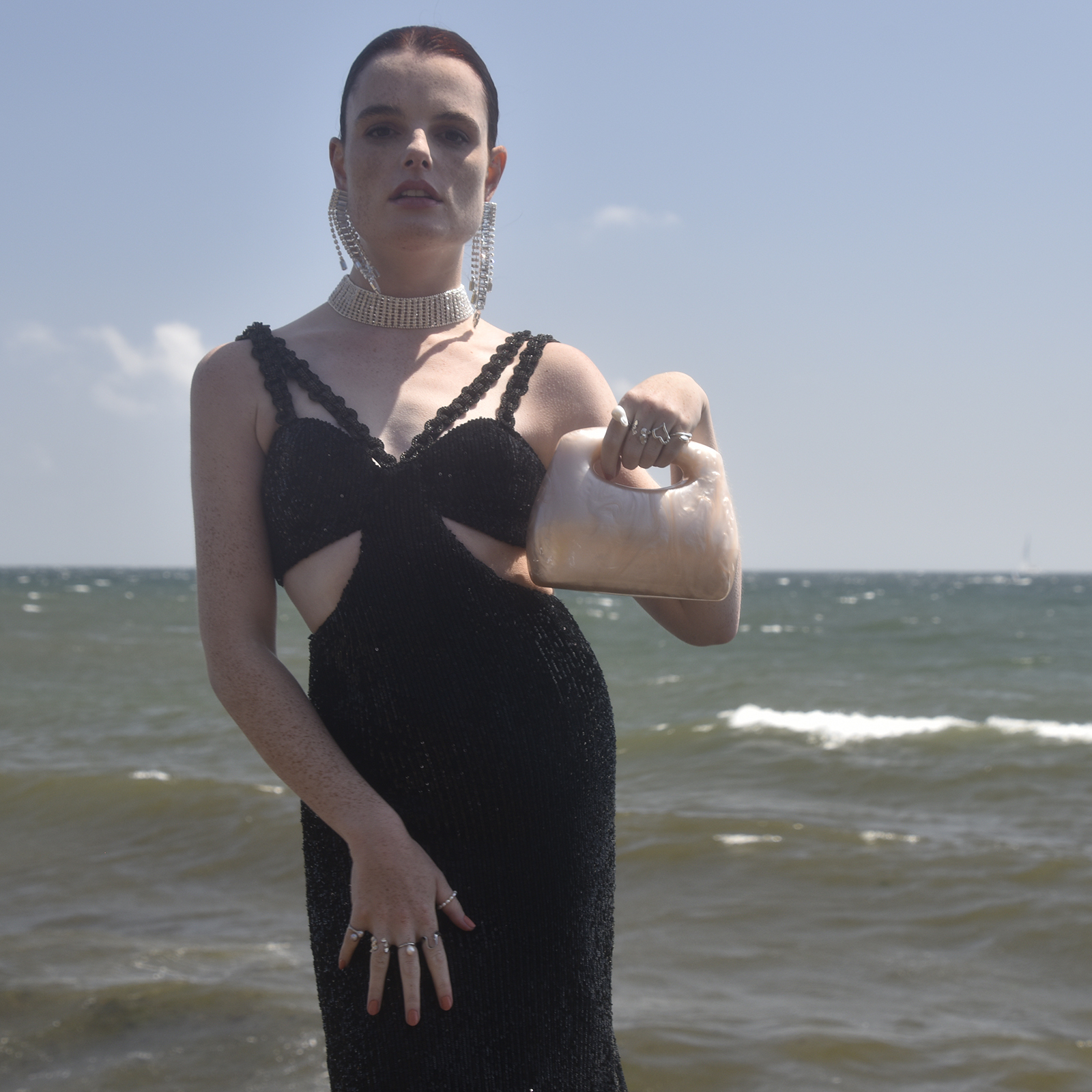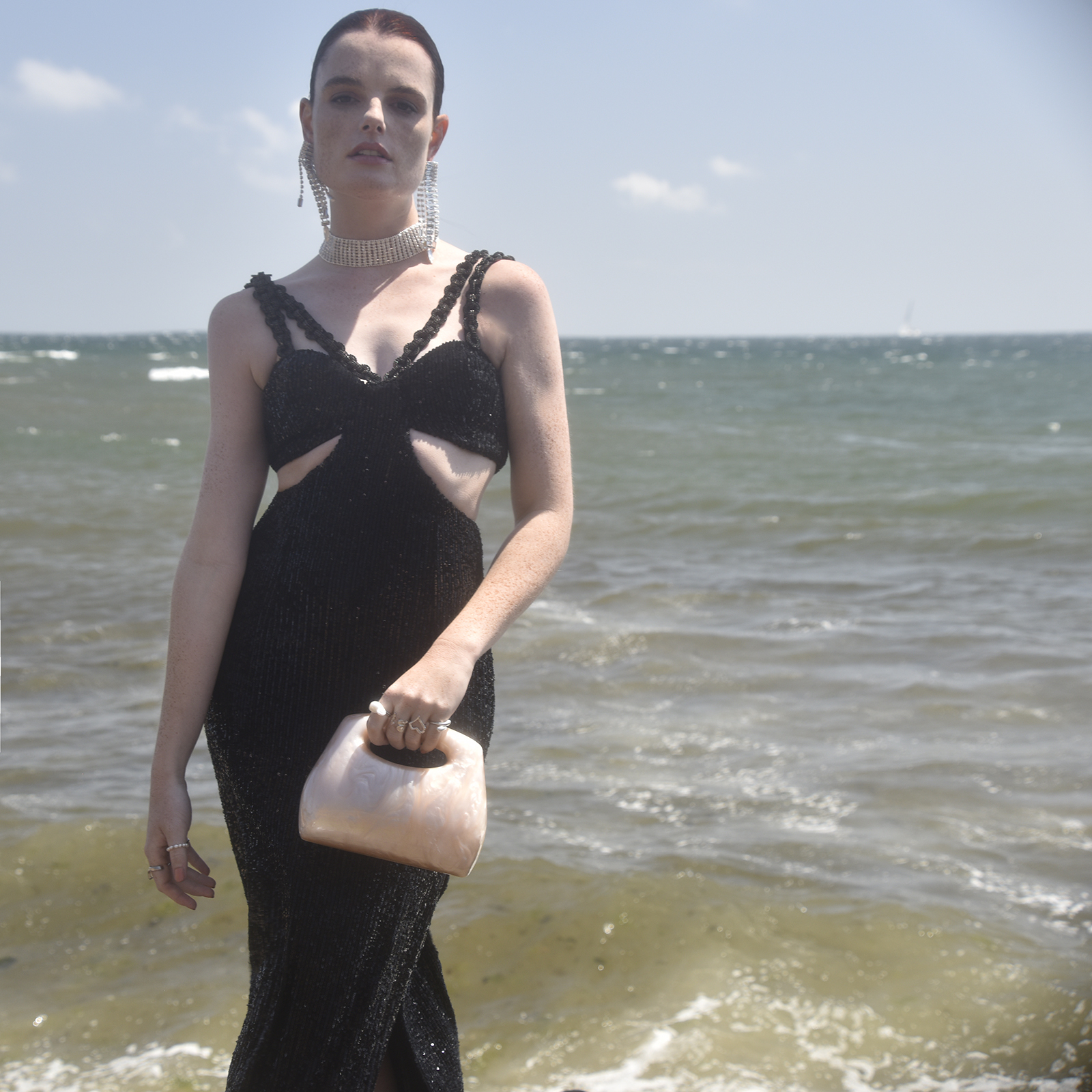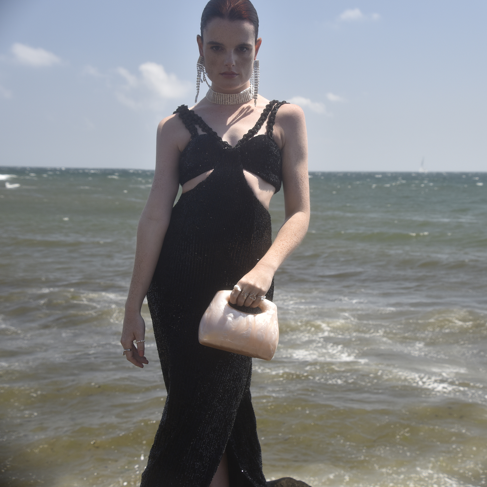 Chic, adorable, unique with creativity in the air. Introducing Elka Artsy Resin Clutch (Nude Shimmer) - a contemporary style resin bag that is hard to take your eyes off. This design features a smooth-edged rectangular clutch bag with a nude beige shimmer, making it an eye-catching and artsy accessory for your elevated high fashion styling. It comes in four different colours: pearl white, lemon, emerald green and nude shimmer. An unforgettable modern statement perfect for formal, semi-formal, racing, dressy, feminine, girly, creative, high fashion, fashion events, smart casual, casual style and more.
