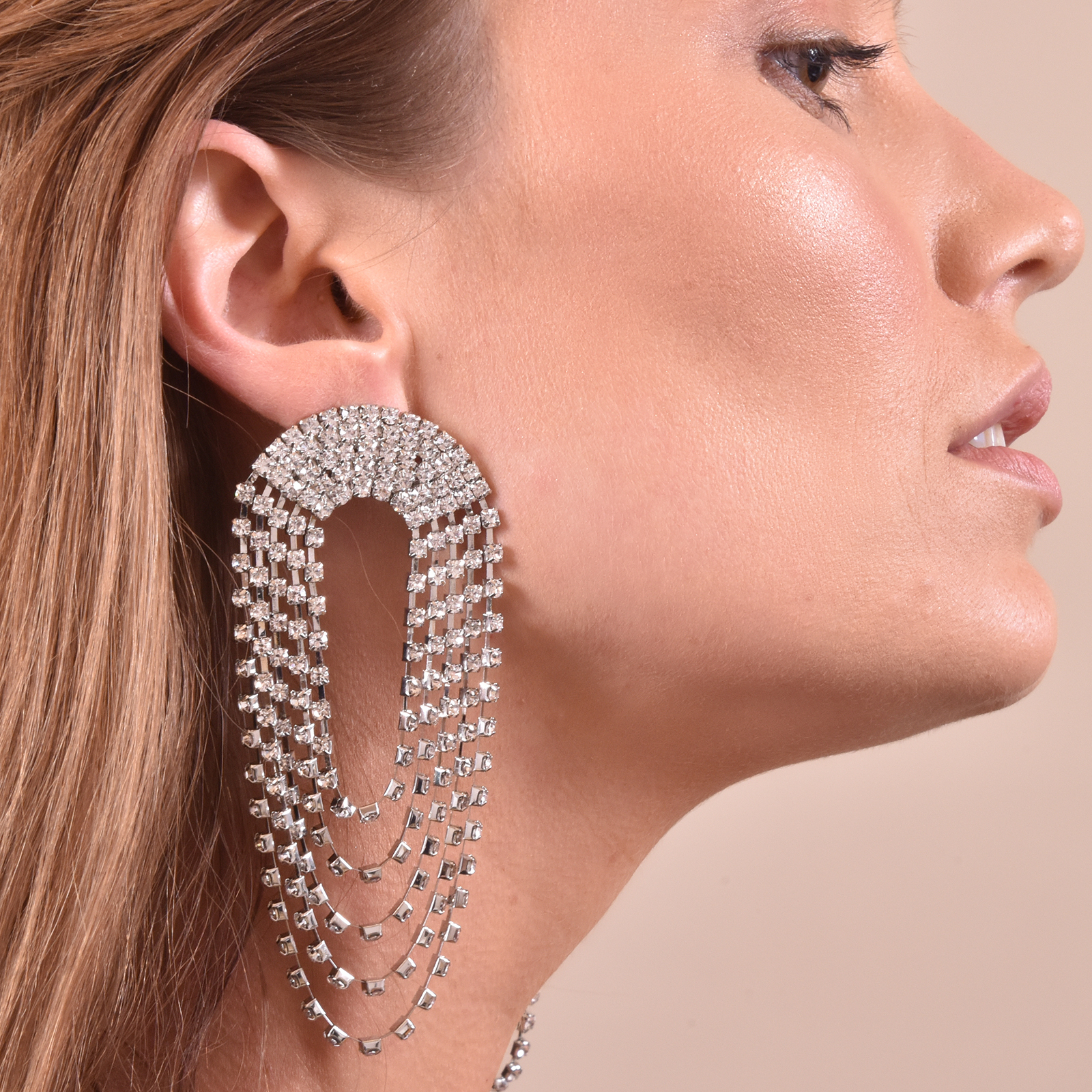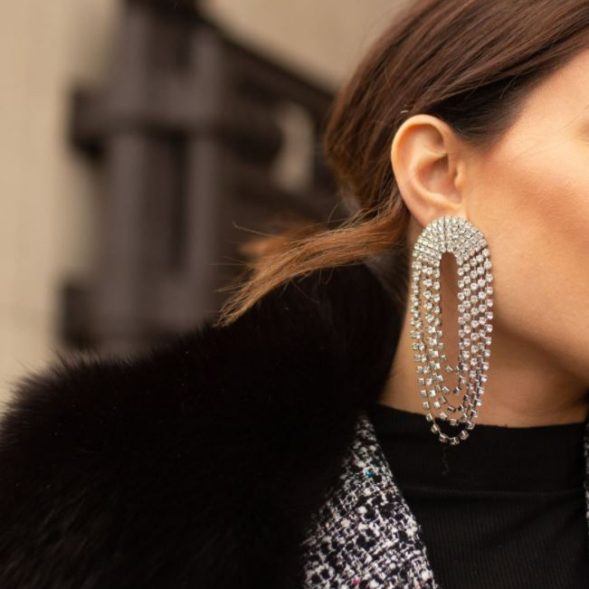 Unique, statement-making and eye-catching, Elle Crystal Diamante Earrings are another iconic glamour piece you will need for a striking style. Spotted in fashion runway front and celebrity styling, this design is loved by fashionista who isn't afraid to make a statement. Available for both pierced and non-pierced ears.