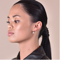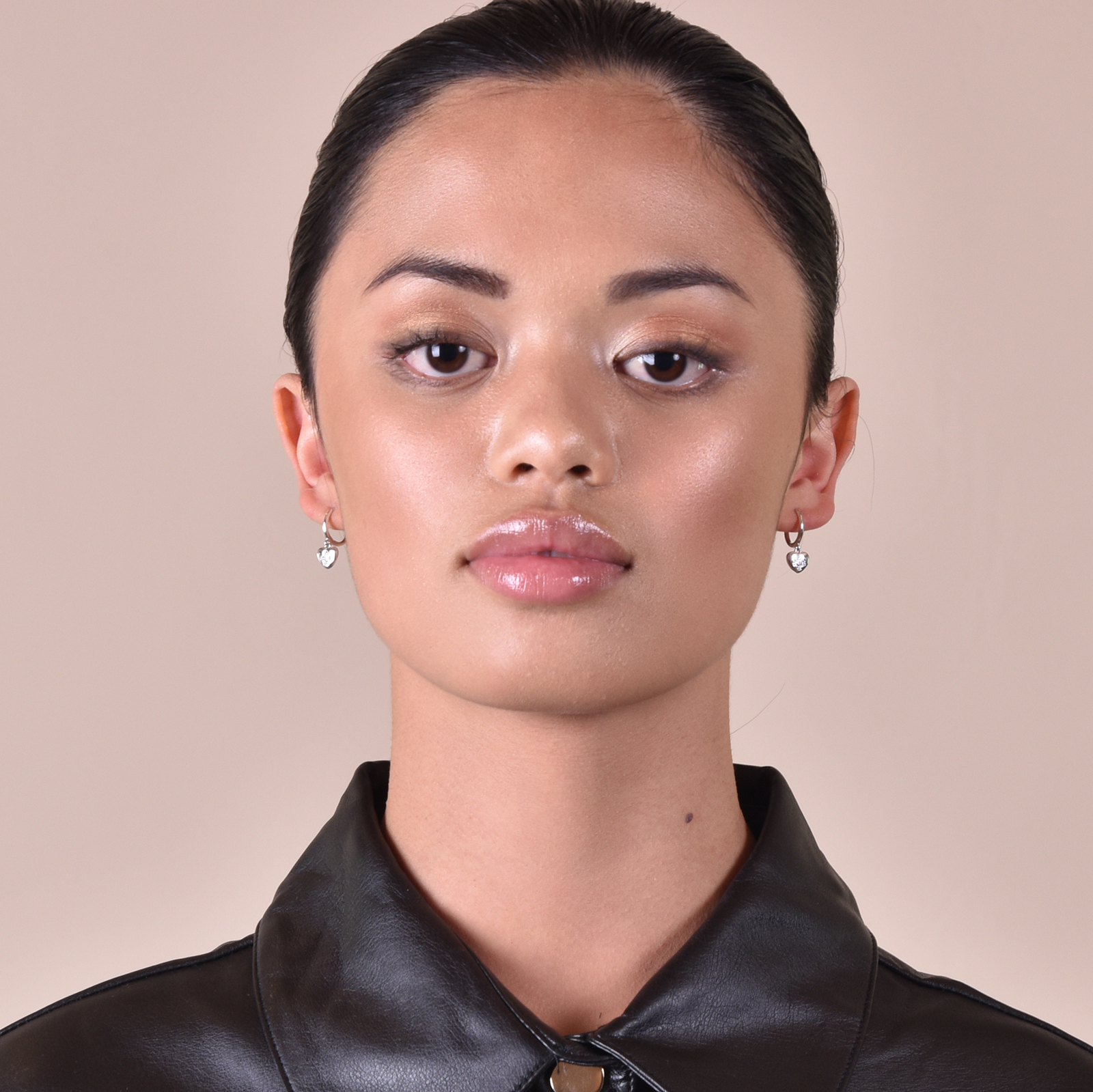Everyday chicness with an adorable heart drop. Introducing Elva Dainty Heart Drop Earrings - a stylish everyday ear love for lovers of dainty styles. This design is made of solid sterling silver (both the earring hoop and the love heart drop). The heart drop is also embellished with clear cubic zirconias in a four-leaf shape. Perfect for modern, chic, casual, earring multi-layering styles and more. Hypoallergenic, nickel, cadmium and lead free.
