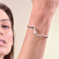 Classy sleekness and modern simplicity interweave. Introducing Elyse Artisan Silver Solid Bangle — a timeless and elegant bangle for modern muses. This succinct and creative design is crafted in solid sterling silver featuring a smooth and wavy flow, adding a subtle and elegant movement to your wrist. The uniqueness about this piece is that it is open and can be adjusted manually for the best fit. An ethical and enduring lifelong keep sake for women and girls of all styles. Hypoallergenic, nickel, cadmium and lead free.