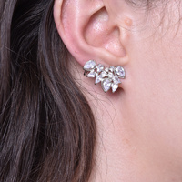 Shine with shimmering elegance. introducing Emerson Crystal Leaf Earrings - a delicate and detail-rich silver design featuring Swarovski crystals. This classy style embodies stud and cuff features in one piece to secure the earring fitting and forms a gorgeous 'leaf-curve' around your ear lobe. Uniqueness lies in the subtleness. Perfect for wedding, formal, semi-formal, dressy, evening, everyday glamour styles. 100% nickel, lead and cadmium free.