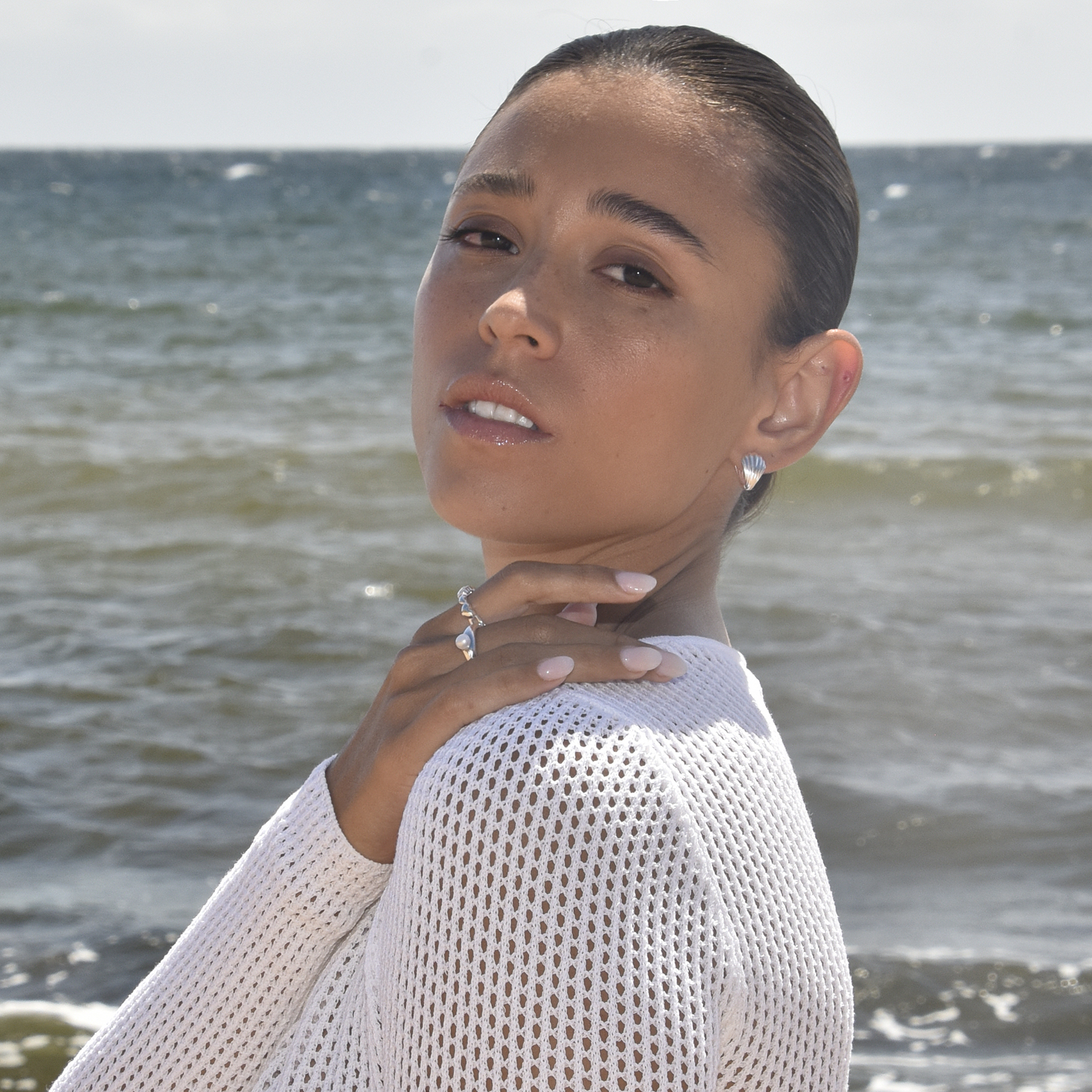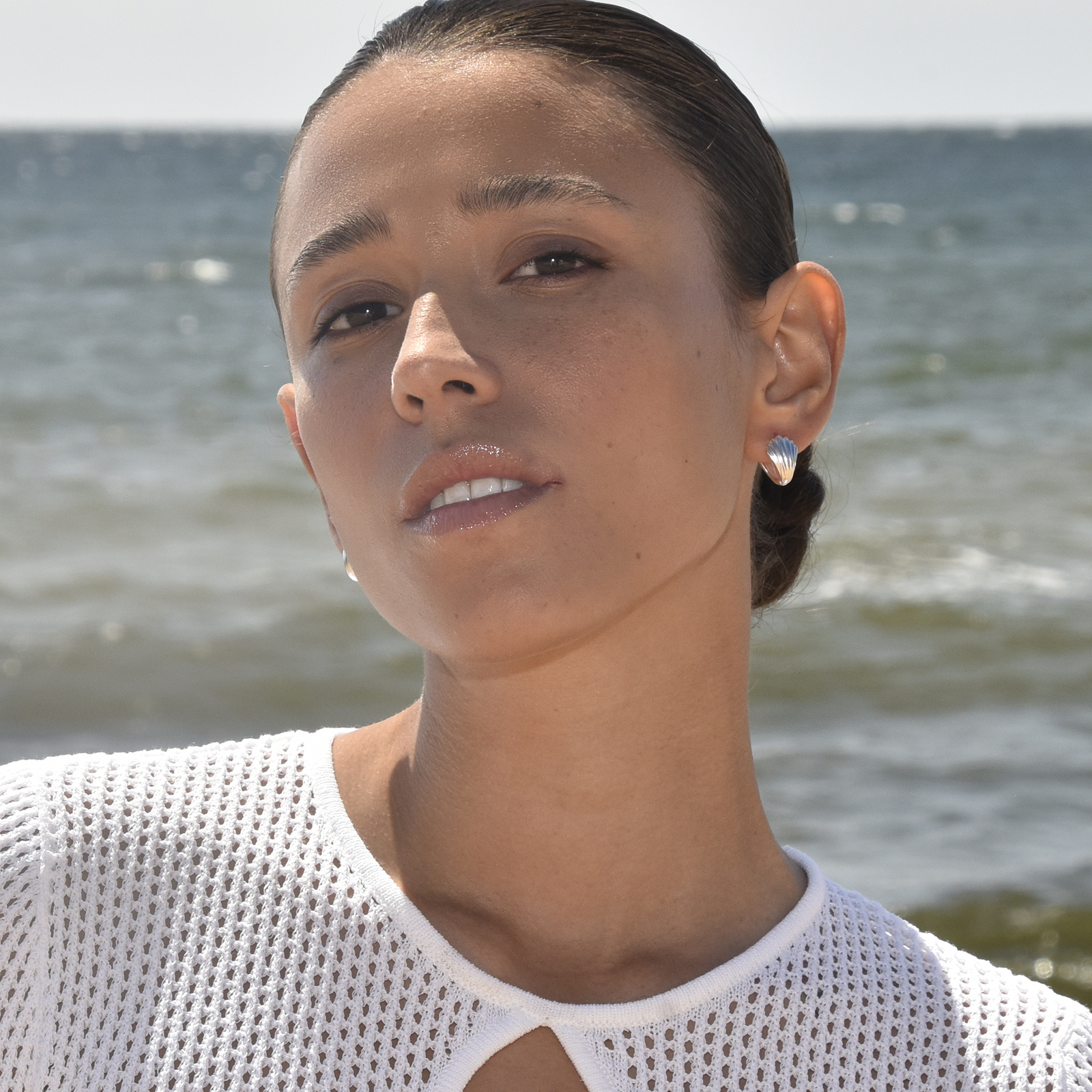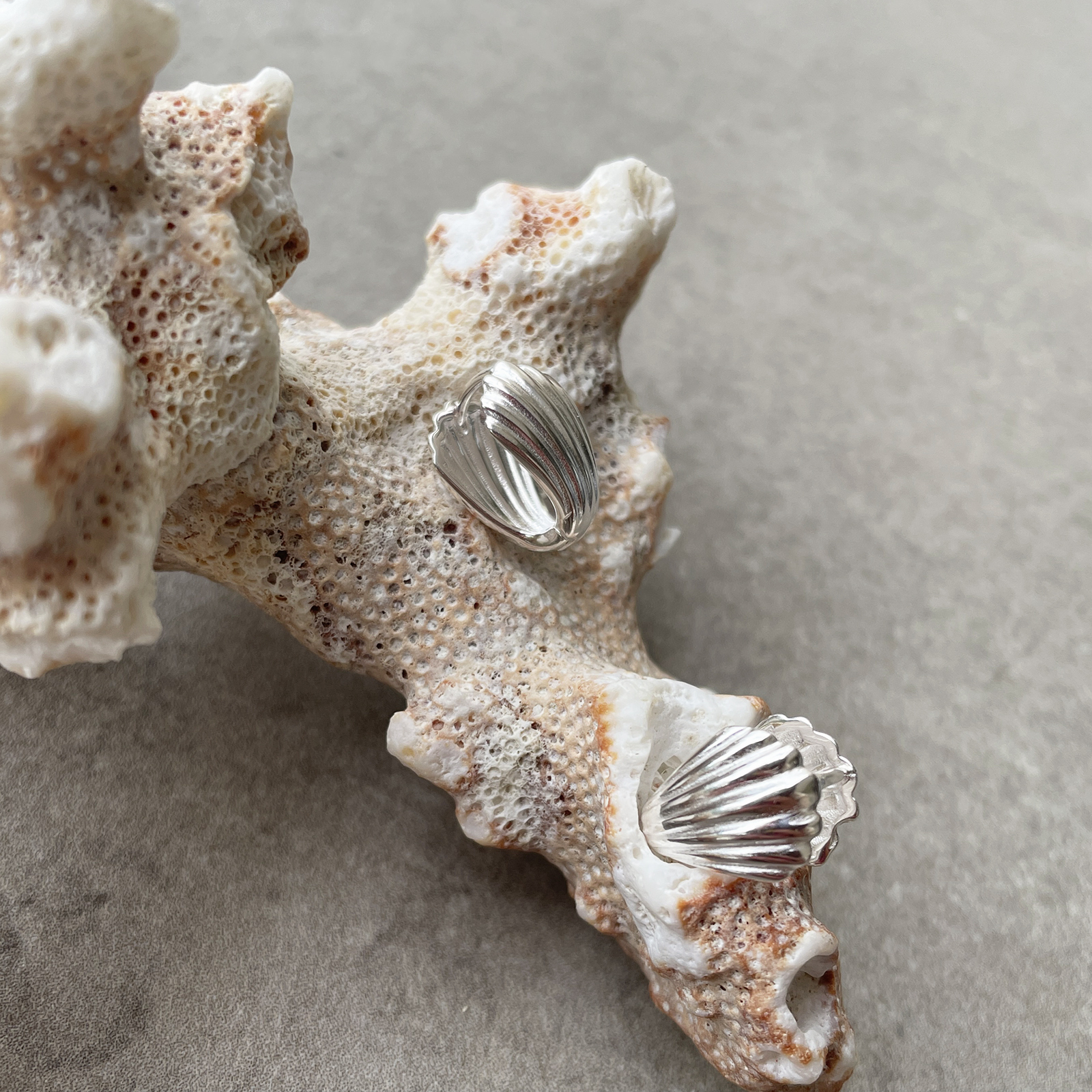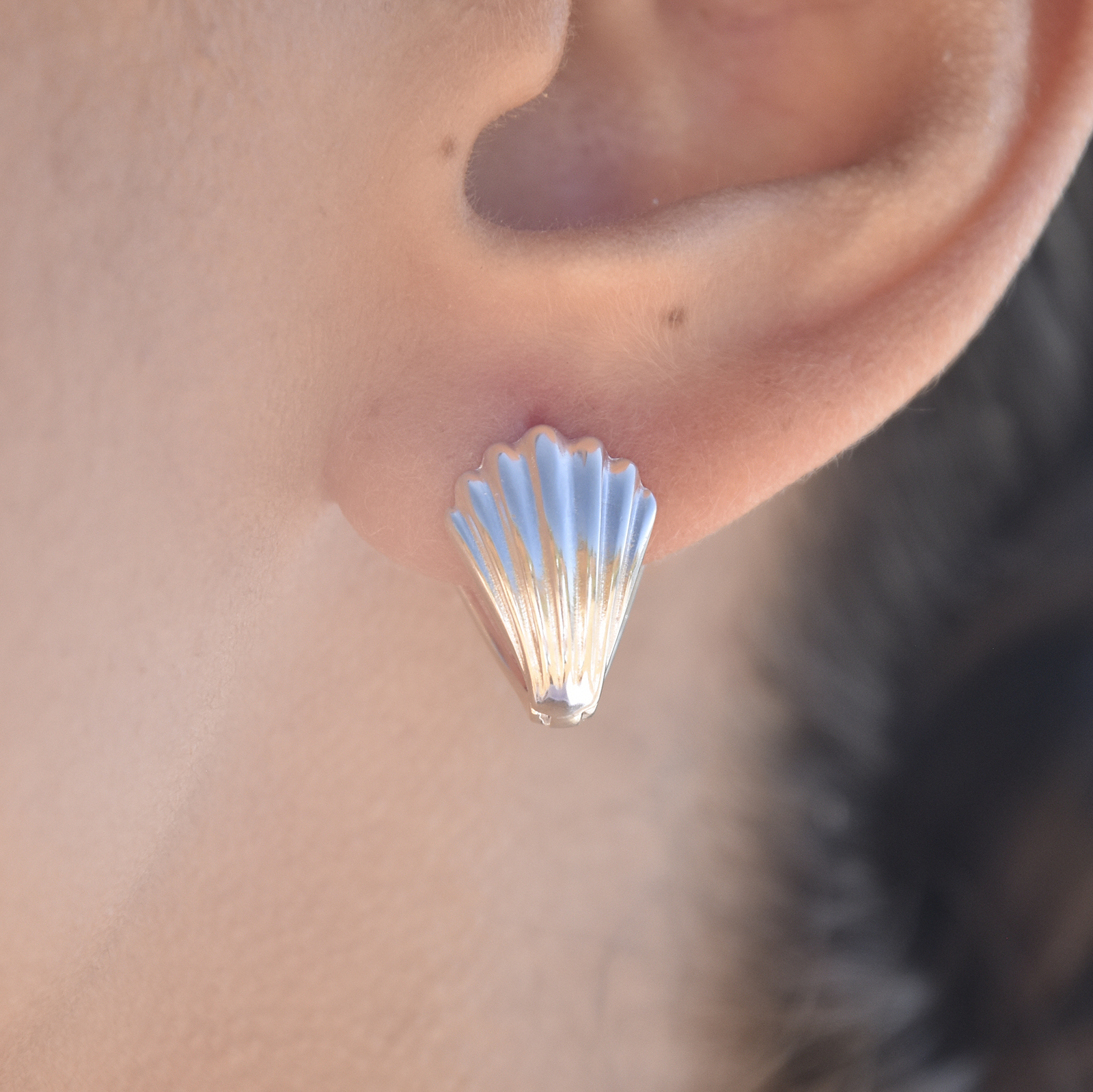 Coastal vibes with an artsy touch. Introducing Esmarie Twin Clam Huggie Earrings (Silver) - a creative earring style inspired by summer and coastal cultures. This design features twin clams forming a hug around your earlobe. The earrings are made in solid sterling silver with white rhodium plating for hypoallergenic, an extra anti-tarnish protection and enduring wear. Perfect for almost all personal styles and to add a delicate joy to your everyday dressing. Perfect for modern, artsy, coastal, summer, boho, minimalist, earring layering, smart casual, casual, everyday styles and more. Hypoallergenic, nickel, lead, and cadmium free.