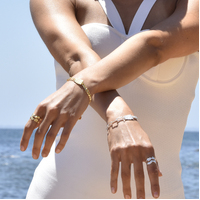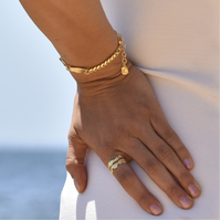 Spark creativity with a highlight of textured and reformed femininity. Introducing Esther Sculpture Plate Link Chain Bracelet (Gold) - a sculpture inspired modern wrist love adding a subtle strength to your styling. This design features a half textured link chain and a half cuban chain with an artsy sculpture plate in the middle. This bracelet is made of solid sterling silver with 2.5 microns of 18K gold plating (to Gold Vermeil Jewellery Standard and is 4 times thicker than gold plating used in average fashion jewellery). It is 20cm long including a 3.5cm adjustable link for a more flexible fitting. Perfect for modern muses who prefer something made of congruent quality and outside the norm. Hypoallergenic, nickel, cadmium and lead free.