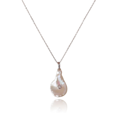 Inspired by Nordic coastal culture and soft feminine beauty, Eve Pearl Pendant Necklace is an artisan design ethically handcrafted with quality materials. The necklace is crafted in solid sterling silver accentuating delicate fine lines with a subtle and bright silver shine. The natural pearl featured in this design is keshi pearl with Austrian fine white crystal, adding an elegant highlight to the pearl pendant. such a classic pearl pedant necklace is perfect for all occasions and is always appropriate. 100% nickel, cadmium and lead free.