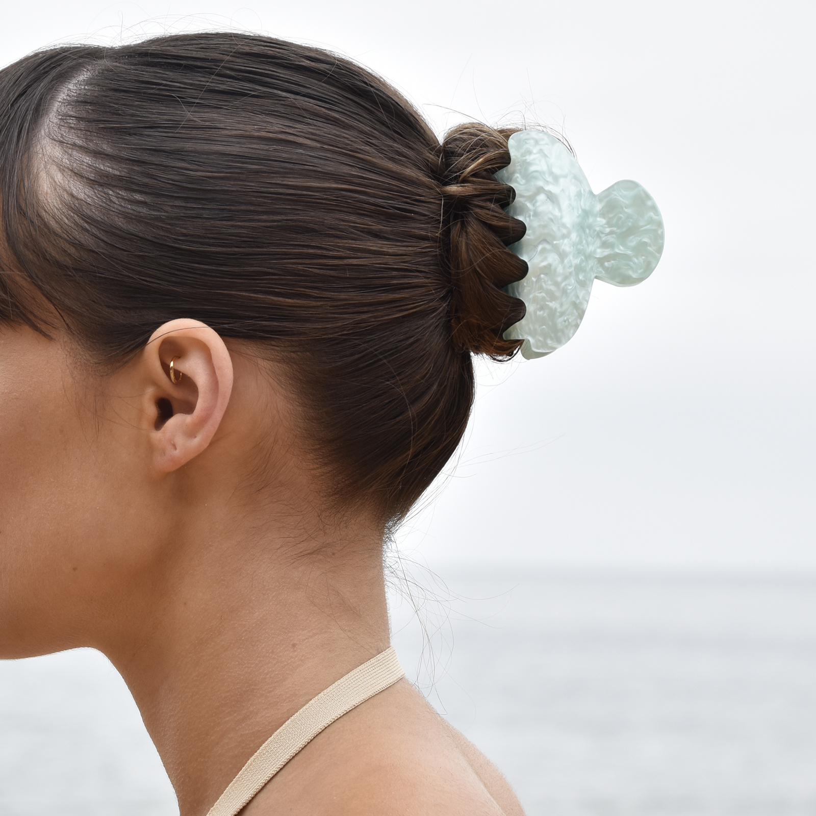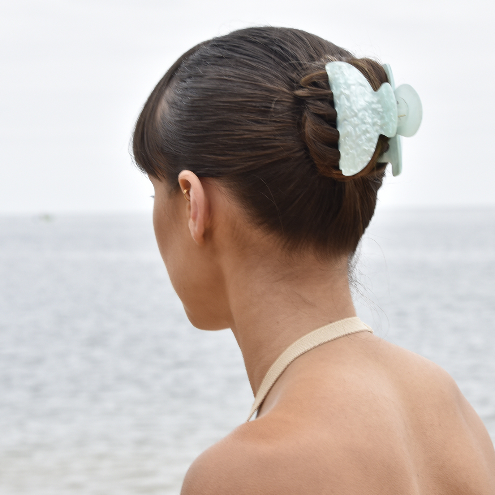 Refreshing, casual, and chic. Introducing Everlee Aqua Shimmer Hair Claw - a contemporary hair accessory for women and girls of all ages. The design features a crescent shaped medium sized claw with an aqua shimmer – adding a chic and soothing vibe to your styling. A beautiful and simple hair claw that makes everyday styling simple and effortless.