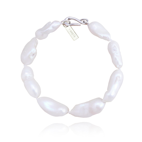 Baroque pearl elegance around your wrist. Introducing Eyre Baroque Pearl Bracelet — a handmade baroque pearl beauty for your elevated styling. This piece features baroque pearls with a slightly elongated shape with high natural lustre. It also comes with a sterling silver clasp and a round link for closure. Infused with costal elements, this piece makes an adorable and classy wrist love for beach, summer, chic, modern, vintage, timeless, dressy, simple and elevated styling. Hypoallergenic, nickel, cadmium and lead free.