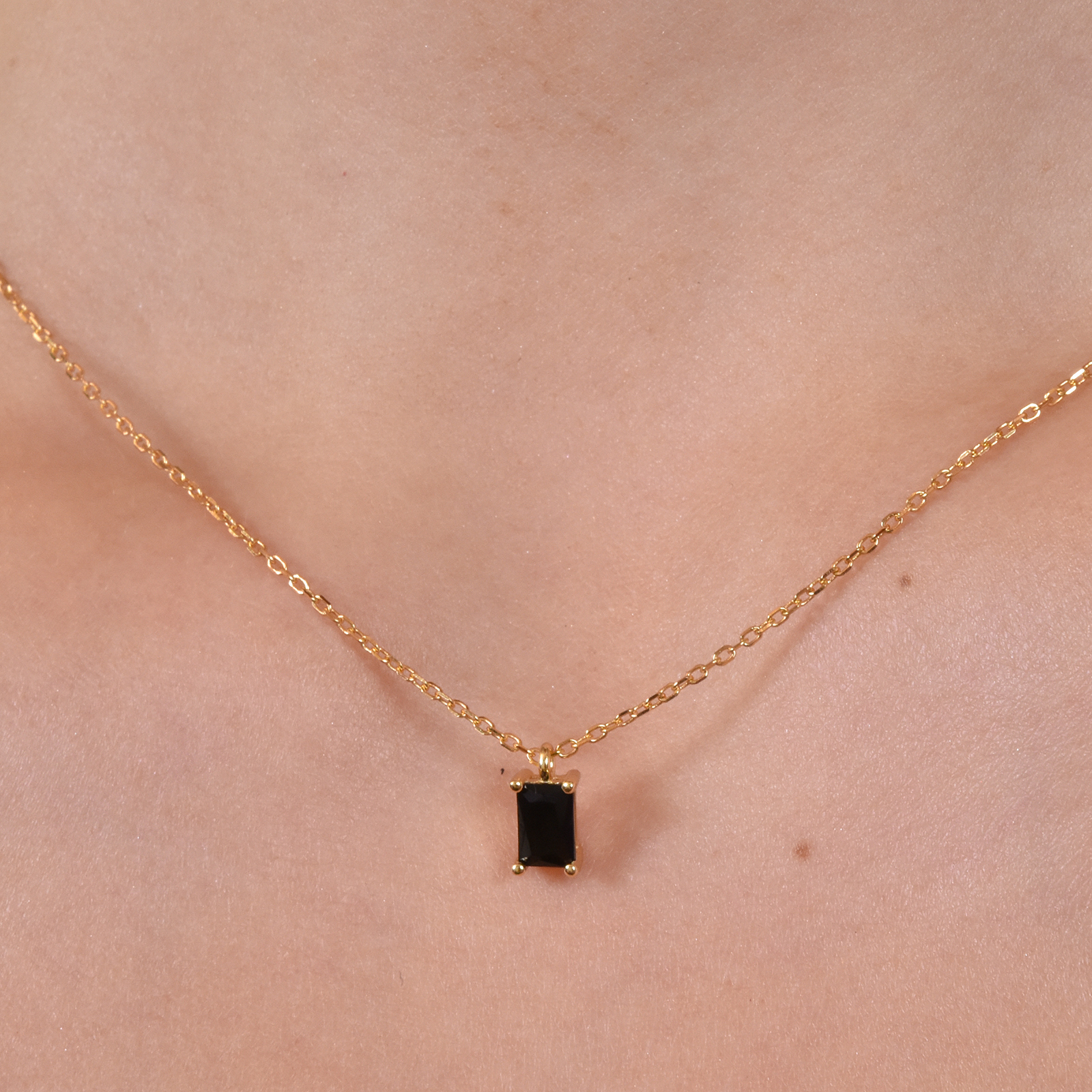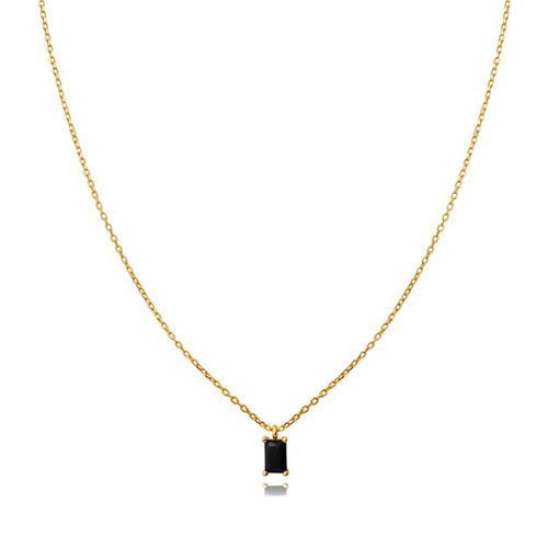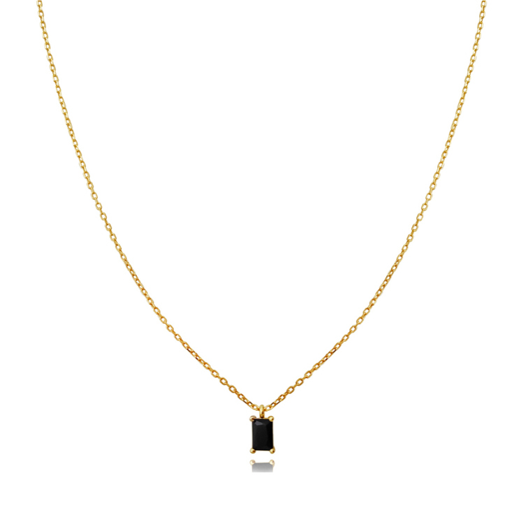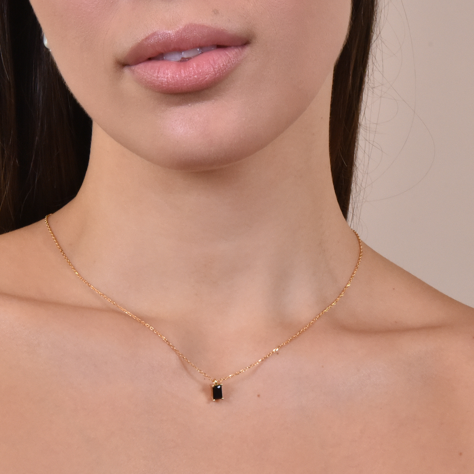 Simple, classy and timeless. Introducing Ezra Fine Black Zircon Pendant Necklace — a classic fine style neckpiece for your chic everyday styling. This piece features a 18K gold plated fine necklace made of solid sterling silver and a striking black zircon. It is versatile for styling and suits all personal styles. Hypoallergenic, nickel, cadmium and lead free.