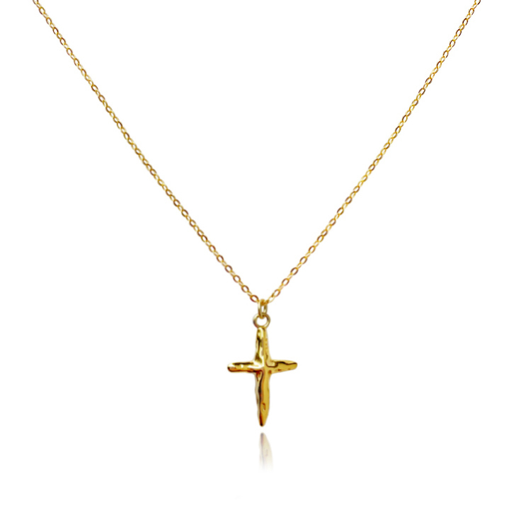 Shine with faith. Introducing Faith Textured Cross Pendant Necklace (Gold) - a modern style cross pendant neckpiece with an artsy touch. This design features a delicate yet solid cross pendant with hammered textures. This neckpiece is made of solid sterling silver with quality 18k gold plating (2.5 microns) to premium jewellery standards, giving the piece a rich and luxurious gold shine that endures. The necklace is 46mm long including a 5cm adjustable link for a preferred personal fit. Suitable for all personal styles, necklace layering, and for women and girls of all ages, as well as for unisex wearing. Hypoallergenic, nickel, cadmium and lead free.