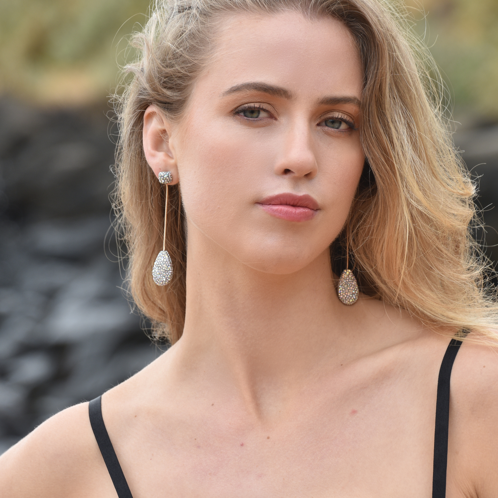 With a subtle shimmer and a chic dangle, dressy styles never get that effortless. introducing Fallen Glamour Drop Earrings - an evening-ready ear love for an instant glamour touch. An elegant bling that is not overtly done, perfect for formal, semi-formal, racing, fashion events, party and any occasions you deserve to shine. Available for both pierced and non-pierced ears.