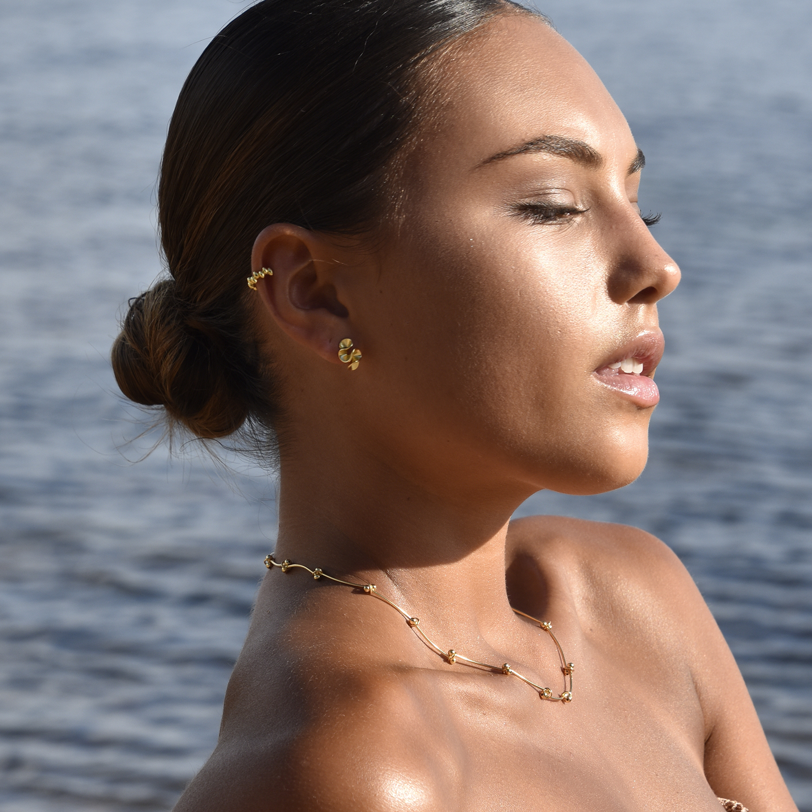 Jolie Deco Bowl Huggie Earrings (Gold)