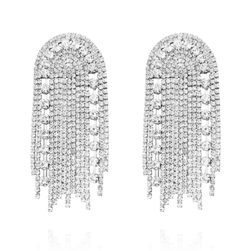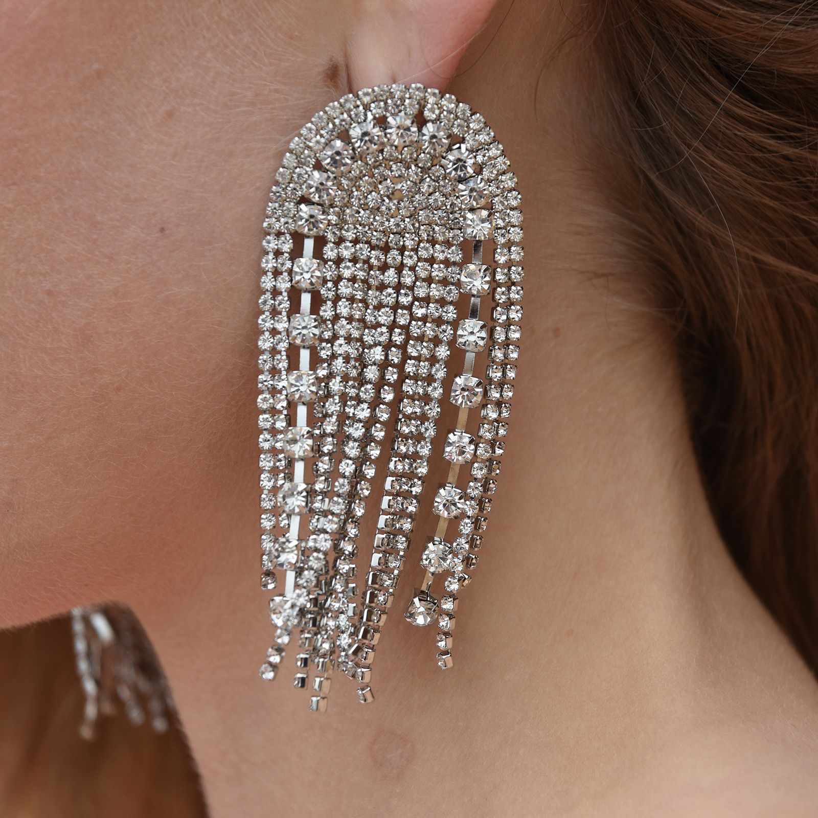 Wondering when a piece of jewellery is equal to a stunning 'outfit'? introducing Faye Glamour Renew Earrings - a luxurious rhinestone and crystal design that is powerful and unforgettable. This design is crafted in environmentally friendly stainless steel (nickel free) with crystal-encrusted diamantes and silver plating, giving the earrings a bright shimmer. This high fashion and 'bomb' style earrings featuring the latest arch earring shape along with shimmering rhinestone and crystal tassels, making you a 'fashion focal' whenever you go. Perfect for fashion events, racing, dressy, wedding, bridal, and formal occasions.
