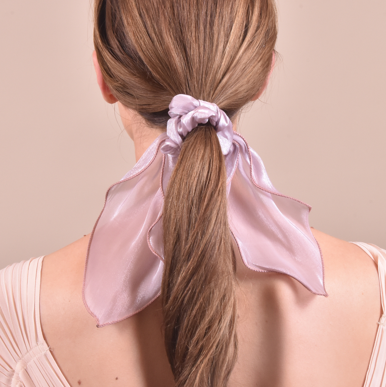 Feminie, chic, and flowy. Introducing Felicia High Gloss Bridal Style Scrunchie — a sweet hair delight for a soft and romantic touch. Enjoy a subtle shimmer with glossy silky satin to complete your look. Perfect for chic, feminine, girly, vintage, summer, coastal, bridal, casual styles and more.