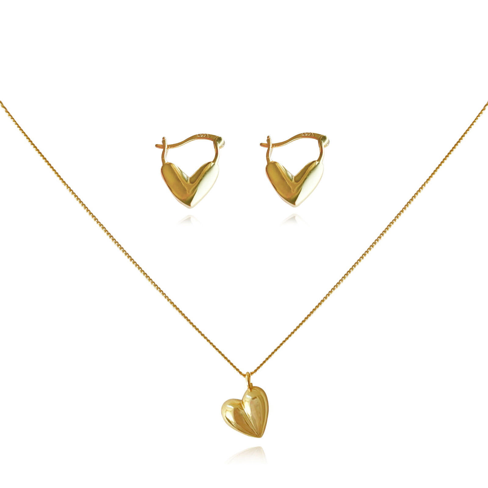 This Gift Set includes: Femi Classic Heart Huggie Earrings (Gold) + Kindred Heart Pendant Necklace (Gold)