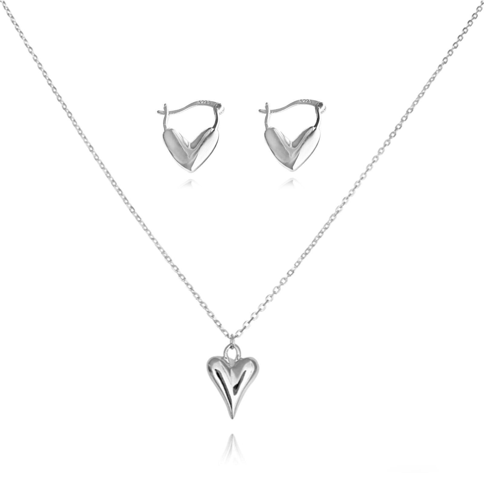 This Gift Set includes: Femi Classic Heart Huggie Earrings (Silver) + Lavinia Classic Love Heart Pendant Necklace (Silver)