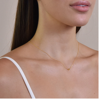 This necklace is 43.3cm long. Please kindly note that the position of the pendant necklace sitting on your chest can vary from individual to individual depending on your top size. Model is a size 8.