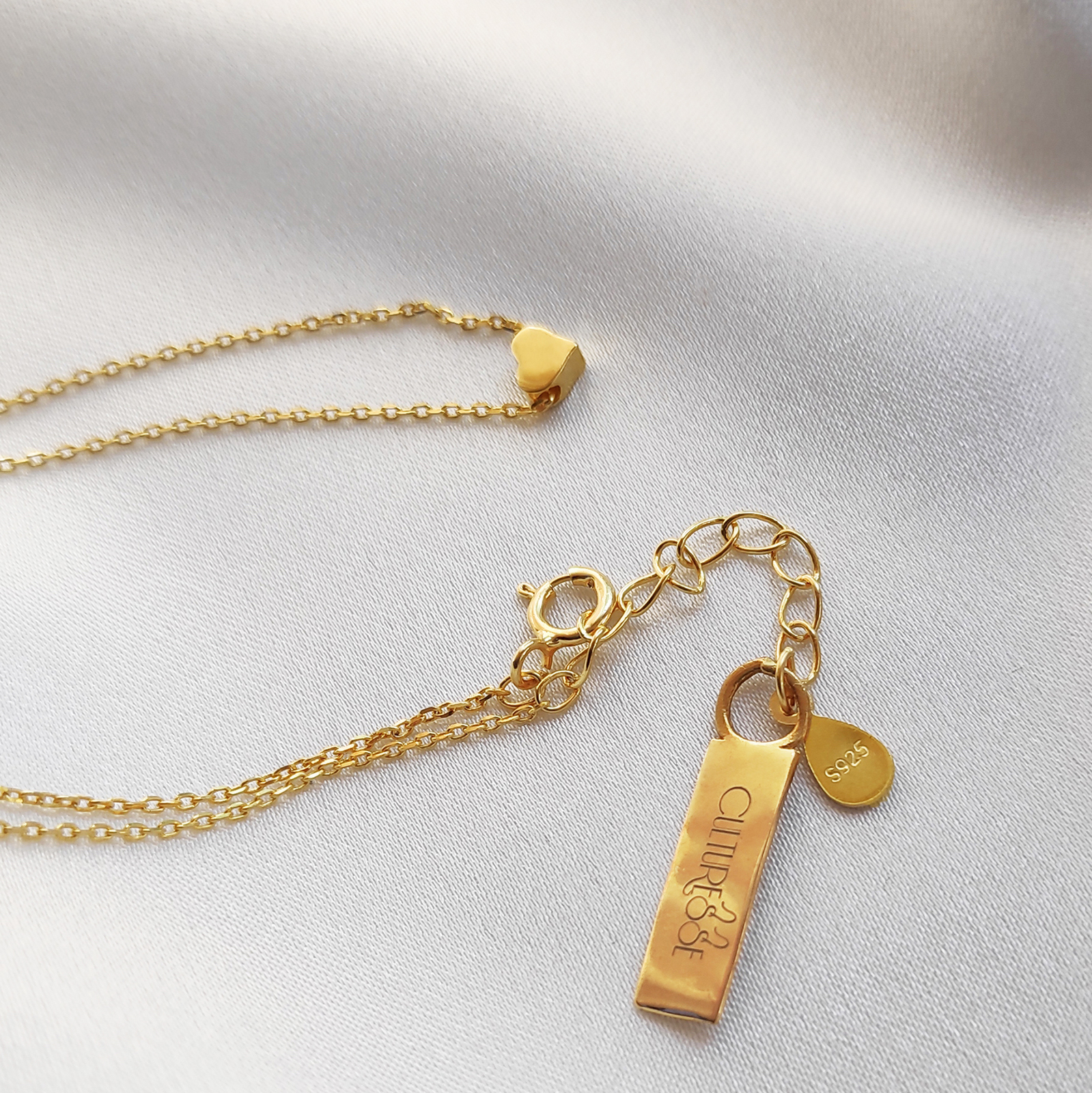 Fine gold chicness for your everyday styling. Introducing Flavia Fine Gold Heart Pendant Necklace - a soft, delicate and timeless neckpiece for girls and women of all ages. This piece is made of solid sterling silver with 18K gold plating featuring a dainty love heart pendant. It is versatile for styling and suitable for any season. Hypoallergenic, nickel, cadmium and lead free.