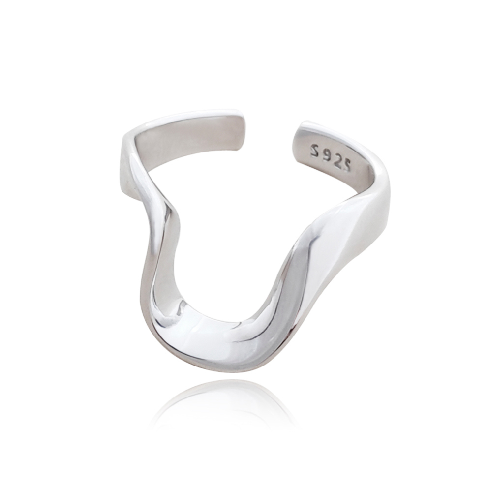 Modern silver finger art with a flow. Introducing Flow Artisan Silver Open Ring - a contemporary silver lining for lovers of uniqueness. This design is inspired by minimalist art with a relaxed vibe. The ring is crafted in solid sterling silver with rhodium plating. The width of the ring band is 4.5mm tapering off at the bottom, forming a solid silver hug to your finger. This ring is resizable and can be manually adjusted for the best fit. Perfect for modern, artsy, creative, minimalist, chic, punk, classy, casual, day-to-day styles and more. Hypoallergenic, nickel, cadmium and lead free.