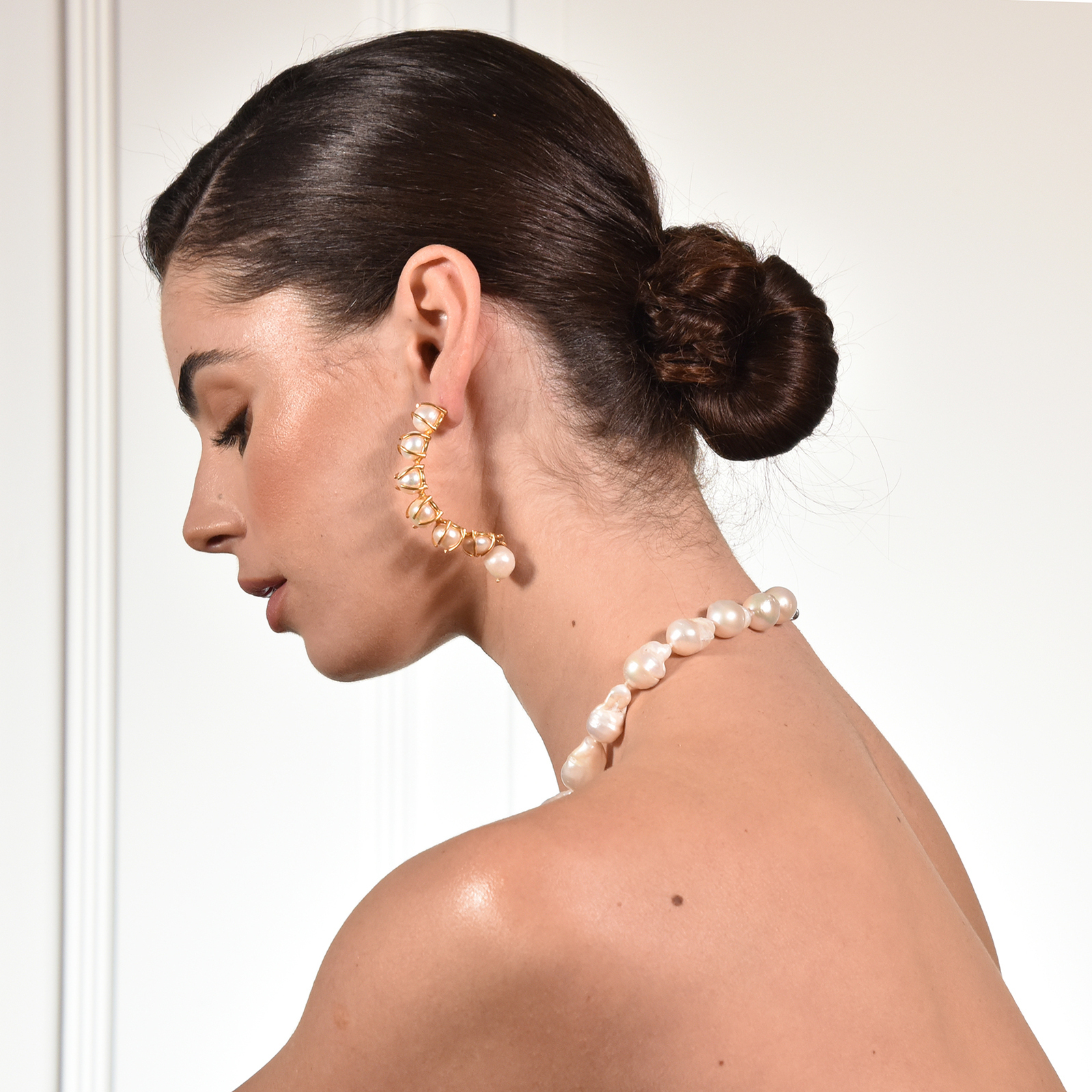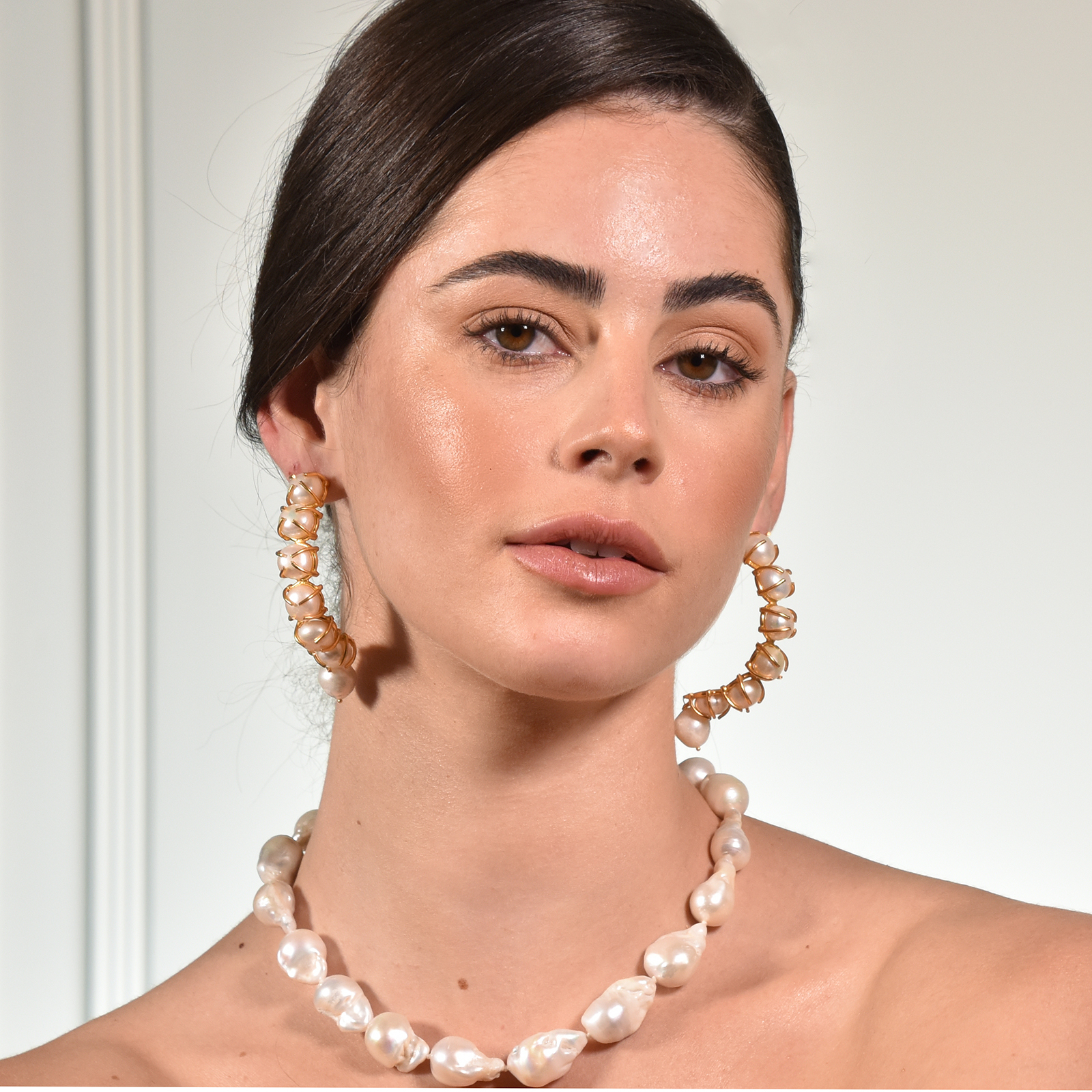Laurent Luxury Baroque Pearl Hoop Earrings (My ears are pierced)