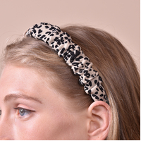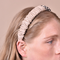Trendy, unique and head-turning. Introducing Frankie Artsy Leopard Headband - a contemporary style creative headband for your elevated smart casual styling. This design features a headband covered in half cloth and half PU leather. Both materials are made in a scrunched fashion to create volume and textures. A playful and tasteful head accessory for muses who prefer something different. Suitable for kids (8 years +) and teens.