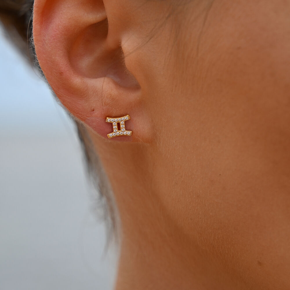 Gemini Artisan Zirconia Pavé Stud Earrings (Gold)