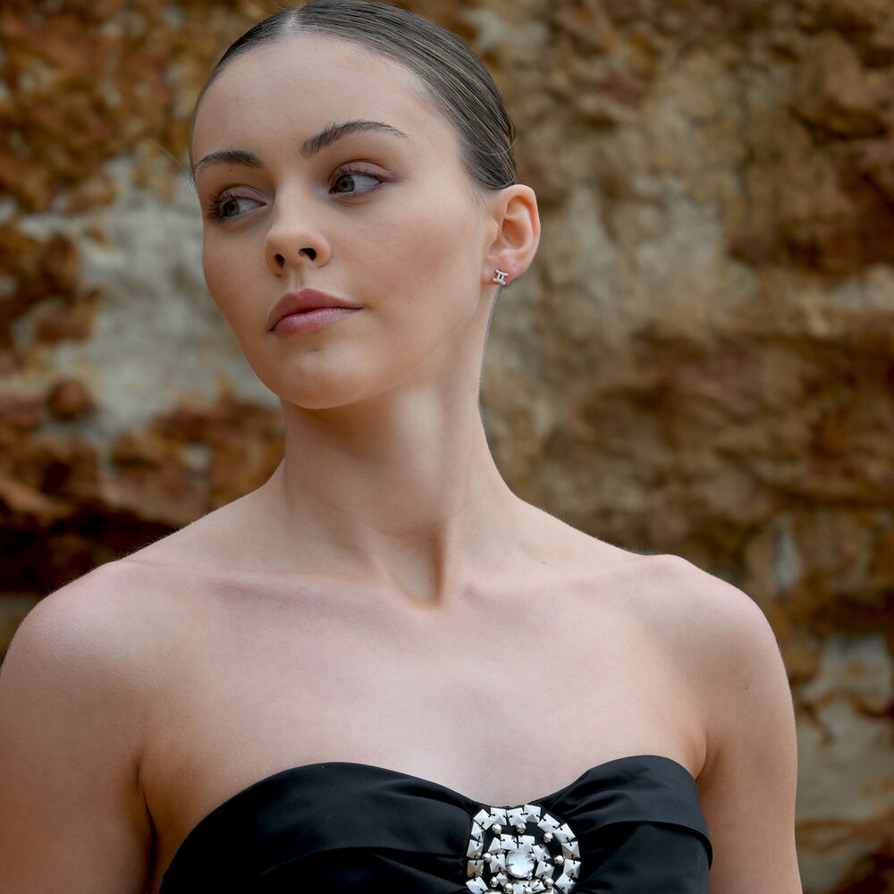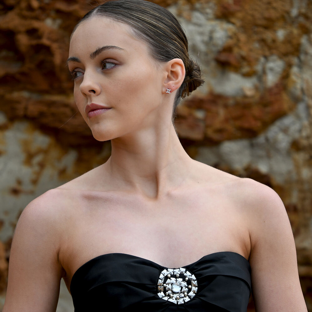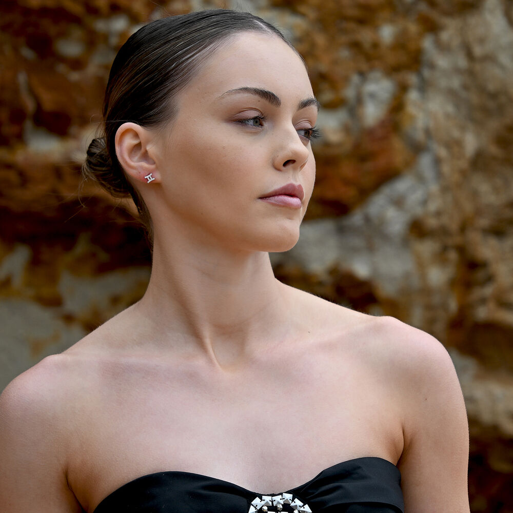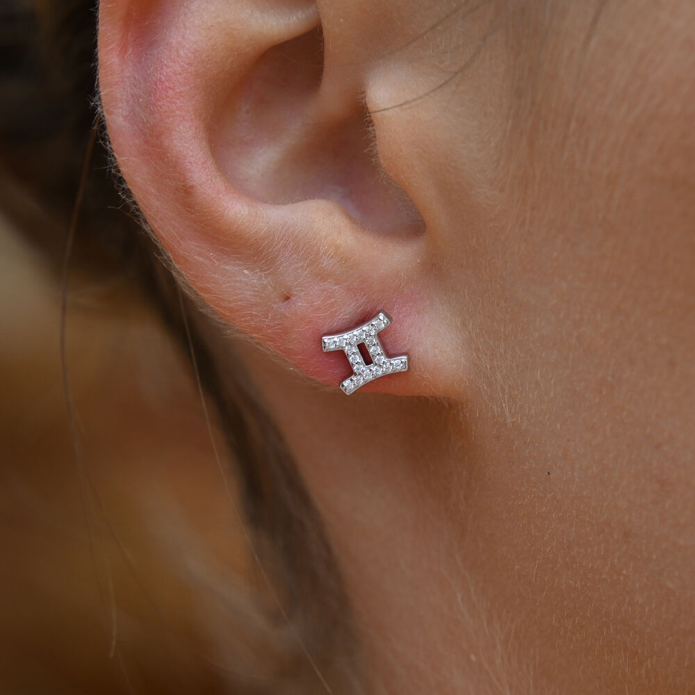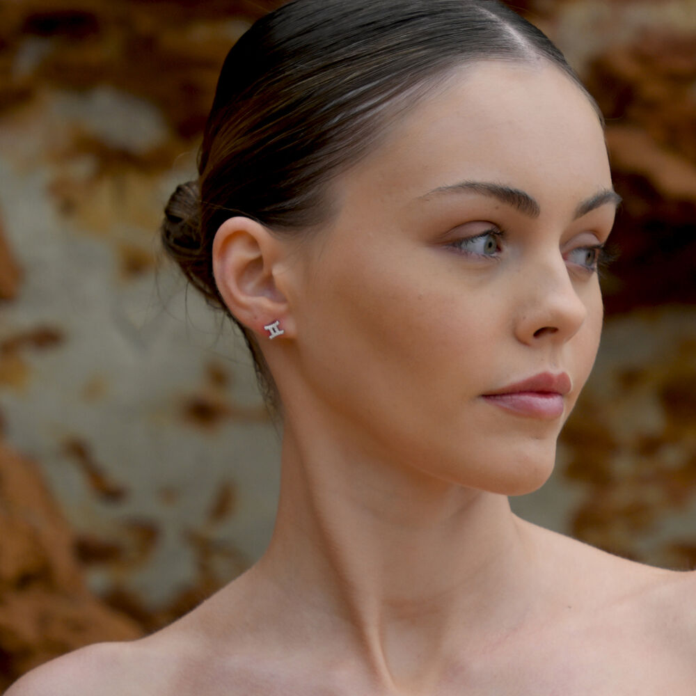 Gemini Artisan Zirconia Pavé Stud Earrings (Silver)
