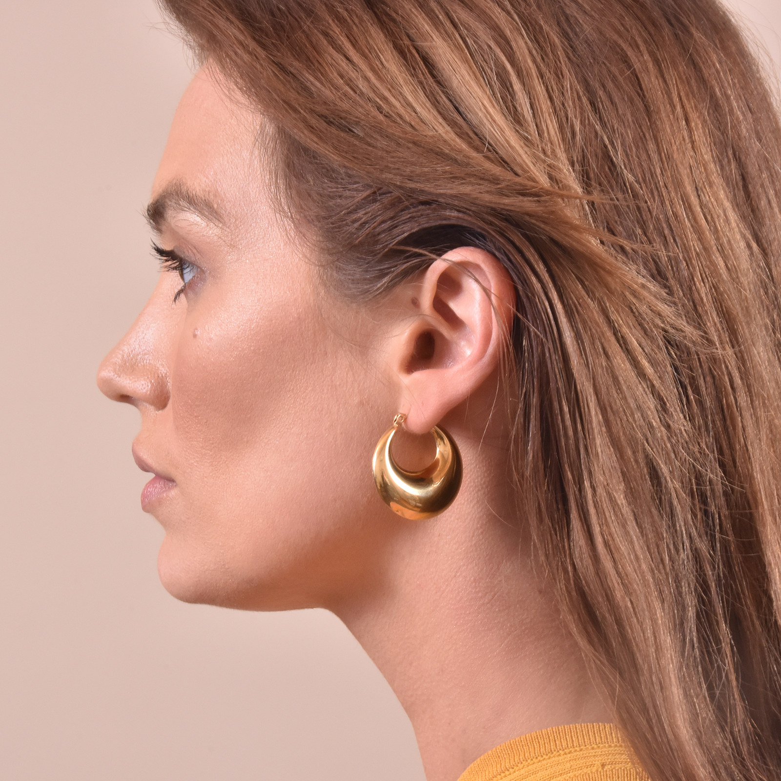 Modern, succinct, sleek and chic. Introducing Girlfriend Chunky Gold Bowl Earrings — a right on-trend chunky style ear love for modern muses. This contemporary inspired style is crafted in environmentally friendly stainless steel (nickel free) with 18K yellow gold plating. The earrings are crafted in a round bowl shape with a highly polished mirror-like finish. It is also of a comfortable weight for long hour wearing. A photo-ready trendy earring style for modern, artsy, chic, minimalist, punk, nordic, casual styles and more. Hypoallergenic, nickel, cadmium and lead free.