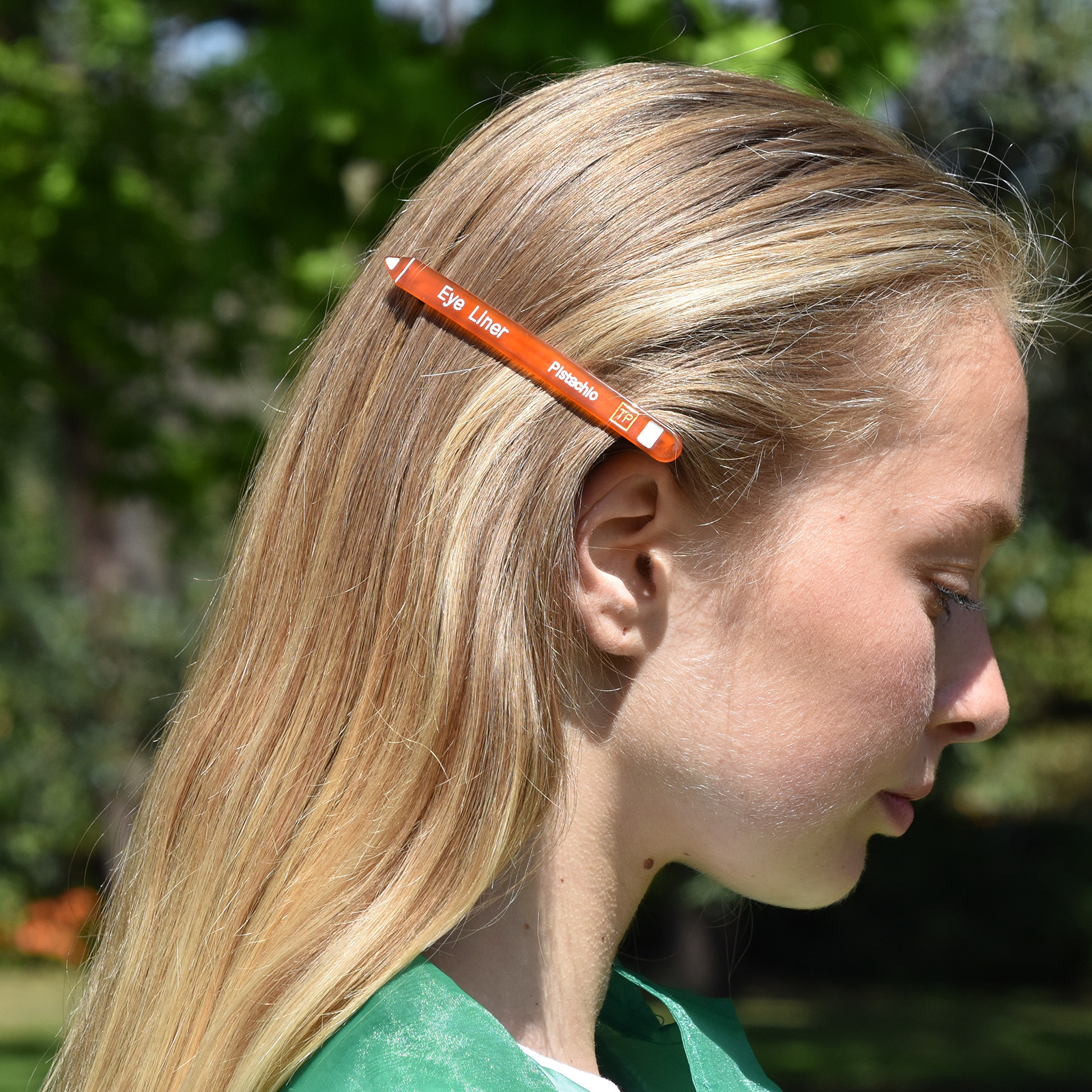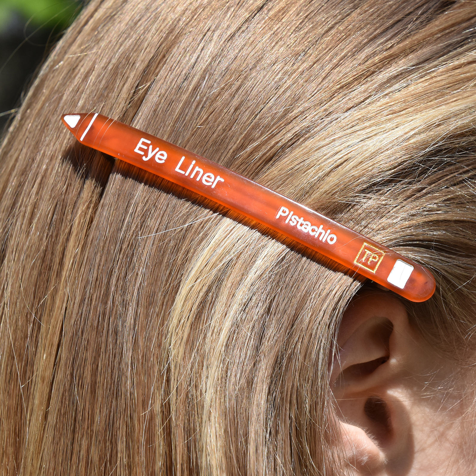 Fun, creative, and unique. Introducing Give Me Eyeliner Barrette – a quirky and stylish hair statement for those who prefer something different. Inspired by the eye makeup essential (eyeliner), this piece holds your hair while makes a resounding statement that turns heads. Perfect for modern, artsy, creative, casual styles and more. Suitable for kids and teens. Also available in white and black.