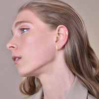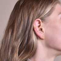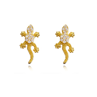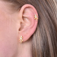 Unique, creative, and ADORABLE. Introducing Gwynn Gold Filled Gecko Screw Back Earrings - a modern fine jewellery piece made with enriched details and congruent high quality. This design features cute gecko shaped earrings embellished with inlaid Austrian cubic zirconias. The earrings are made of solid sterling silver with 18k filled gold for durable and hypoallergenic wear. The earrings come with a screw back closure, which makes them suitable for wearing at helix area. Perfect for modern, artsy, chic, punk, minimalist, earring-layering, earring mismatching, one earring style, smart casual, casual and everyday styles. Also suitable for kids, teens, and for unisex wear. Hypoallergenic, nickel, cadmium and lead free.