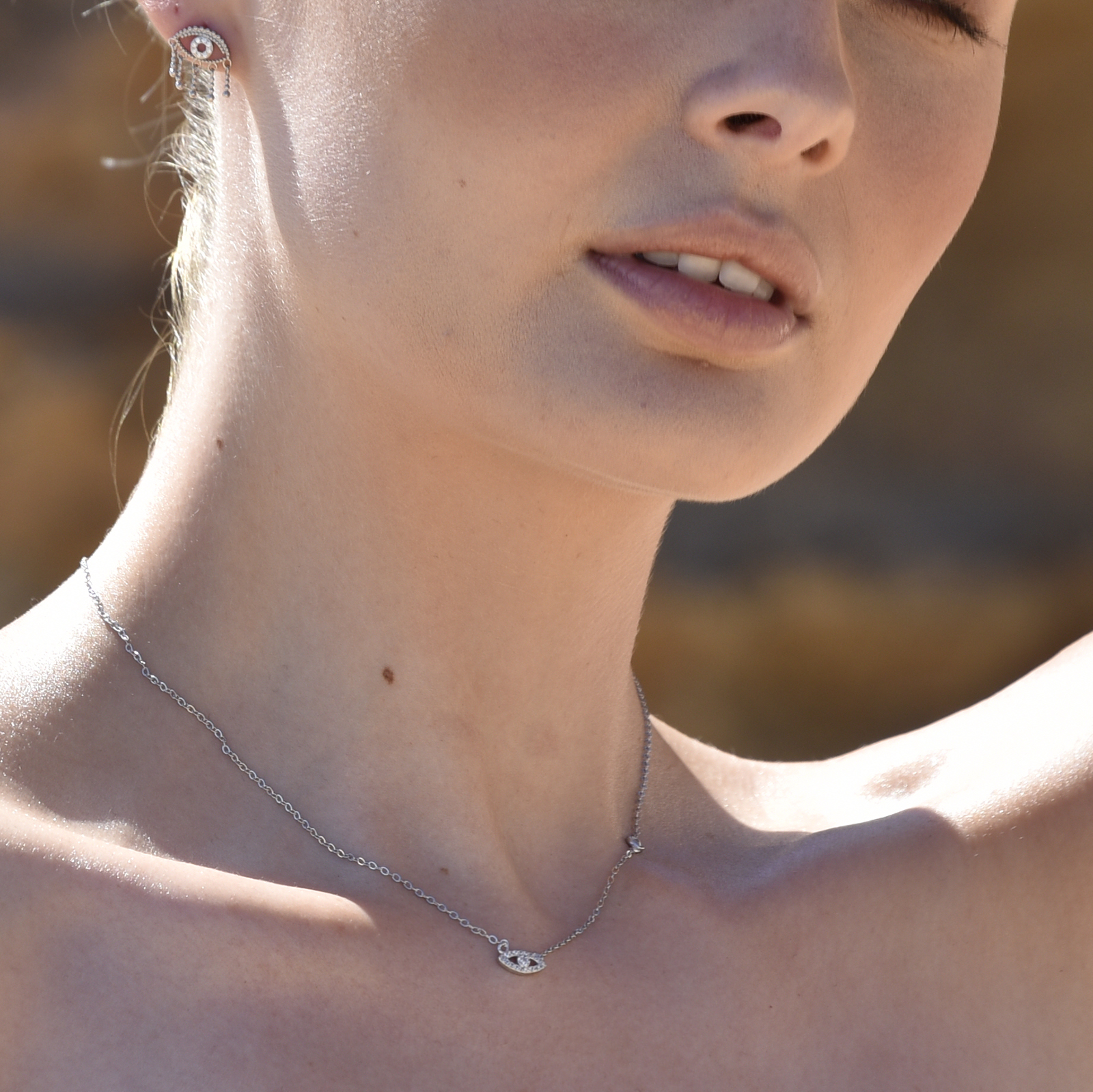 Fine delicacy with a spark of spirituality. Introducing Harmonie Fine Evil Eye Necklace (Silver) - an elevated evil eye style ear love for lovers of uniqueness and fine styles. This design features a traditional evil eye pendant embellished with Austrian cubic zirconias. Along one side of the chain sees a larger Austrian zircon, adding an asymmetrical and an extra sparkle to the piece. This necklace is made in solid sterling silver with rhodium plating for an extra anti-tarnish protection — smooth polished with a high shine. A delicate and timeless fine piece for women and girls of all ages. Perfect for modern, boho, dainty, chic, minimalist, feminine, girly, spiritual, necklace layering, smart casual, casual, everyday styles and more. Hypoallergenic, nickel, cadmium and lead free.