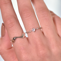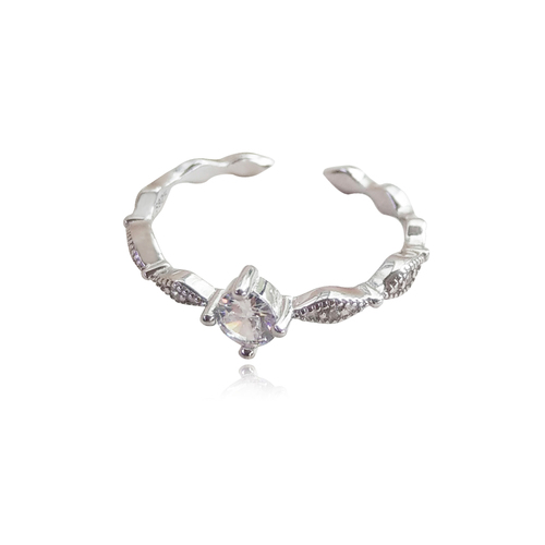 Delicate, fine and details rich. Introducing Ida French Chic Silver Open Ring - a French romantic style silver ring for women and girls of all ages. This design features a quality zirconia stone placed in the centre of a rhombus-patterned ring band. The ring is crafted in solid sterling silver. It can be easily adjusted manually for the best fit. Perfect for modern, minimalist, ring stacking, casual, everyday styles and more. Hypoallergenic, nickel, cadmium and lead free.