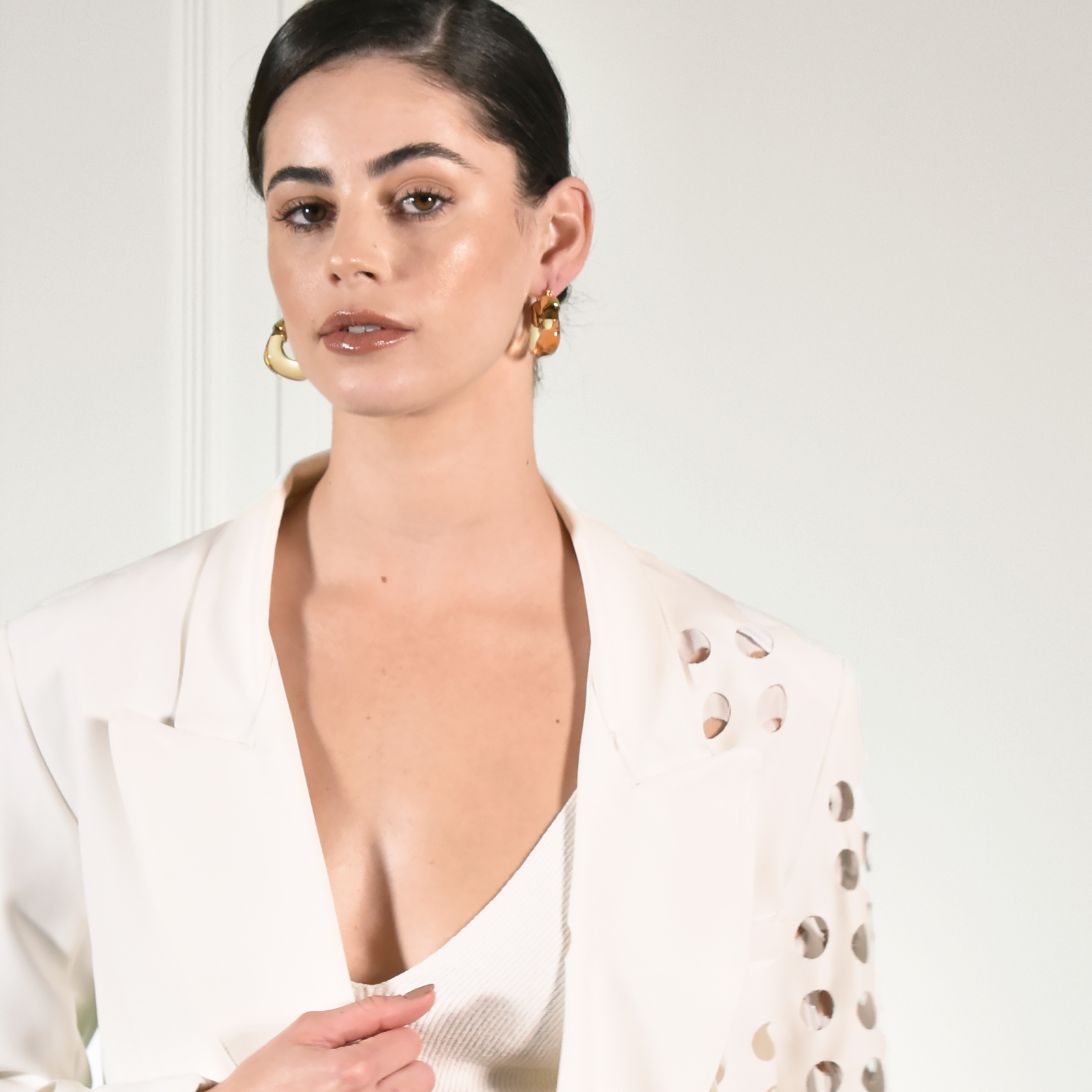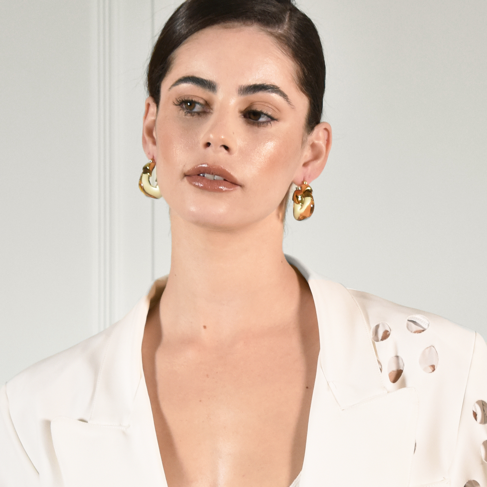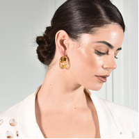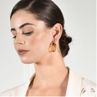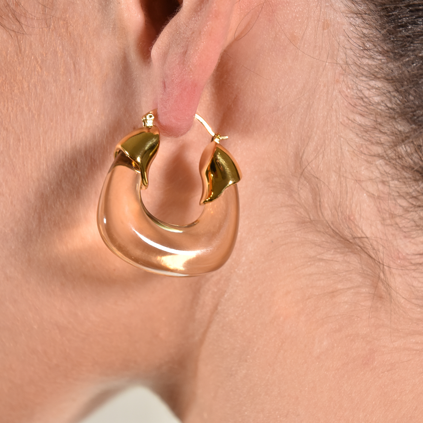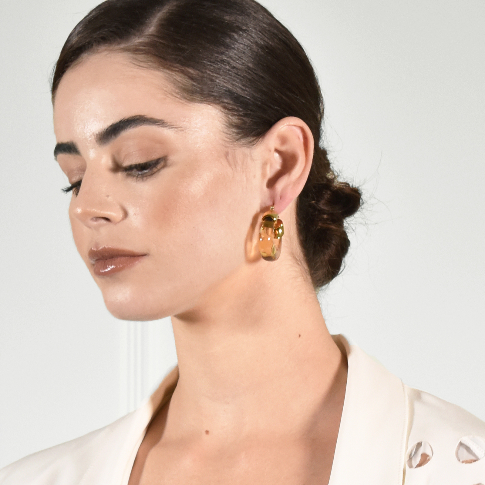 Contemporary, unique and full of artsy vibes. Introducing Ilona Artsy Resin Hoop Earrings (Honey) - an on-trend modern ear love for creative fashionistas. This design features baguette bag shaped hoops made of epoxy resin (not acrylic) and 18k gold plated environmentally friendly brass. This design comes in 5 different shades: clear, amber, honey, emerald green and sapphire blue. You may notice subtle colour change with the last 4 shades in different lighting. A stylish, lighthearted and versatile ear love for modern, artsy, chic, relaxed, trendy, smart casual, casual styles and more.