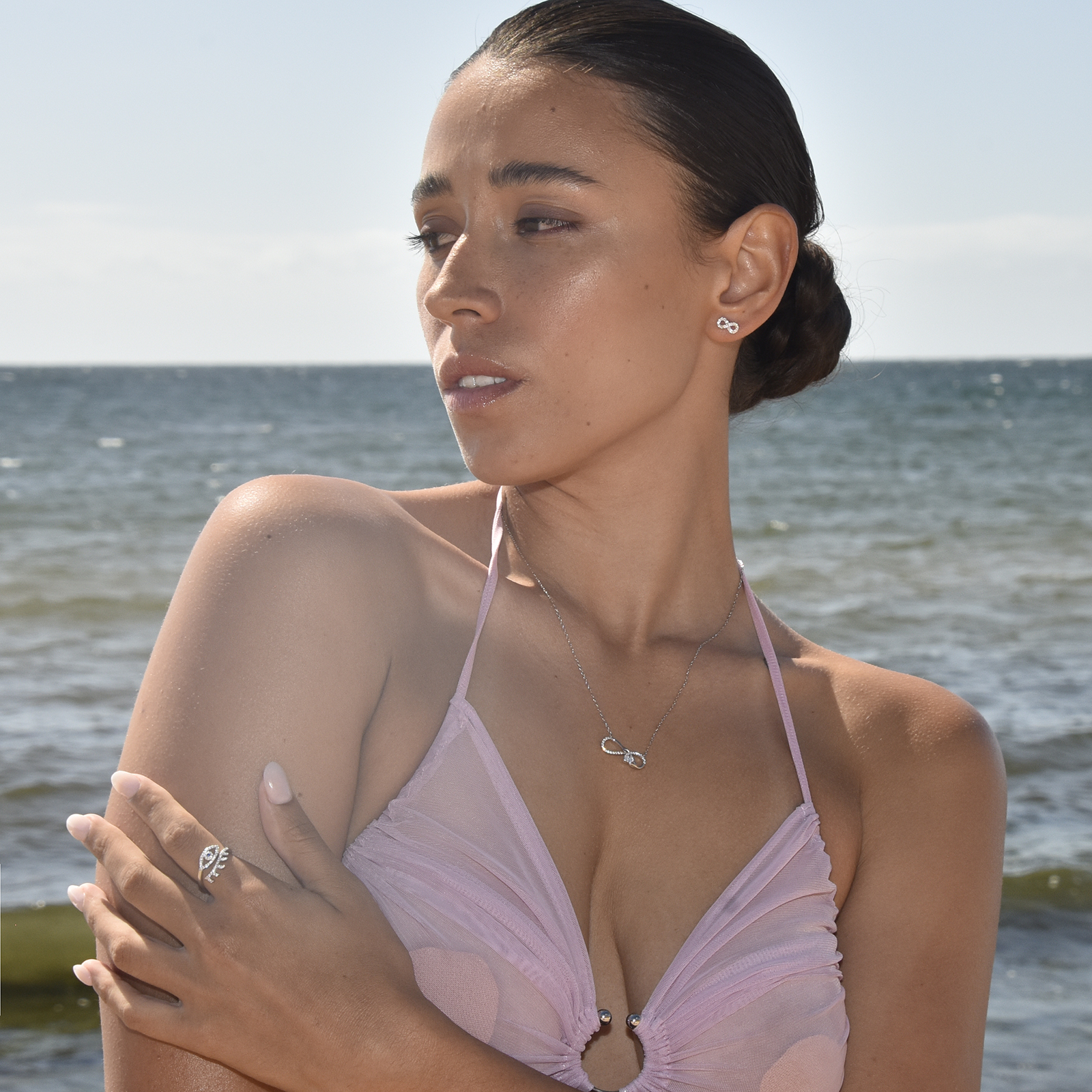 Introducing Infinite Love Pendant Necklace (Silver) - a joyful reminder that you are full of potential and possibilities. This design features an infinity shaped pendant adorned with Austrian cubic zirconias. This necklace features an adorable highlight of a hand reaching for a heart-shaped zircon embedded on one side. This piece is made in solid sterling silver for hypoallergenic and enduring wear. Suitable for girls and women of all ages and personal styles. Hypoallergenic, nickel, lead, and cadmium free.