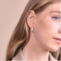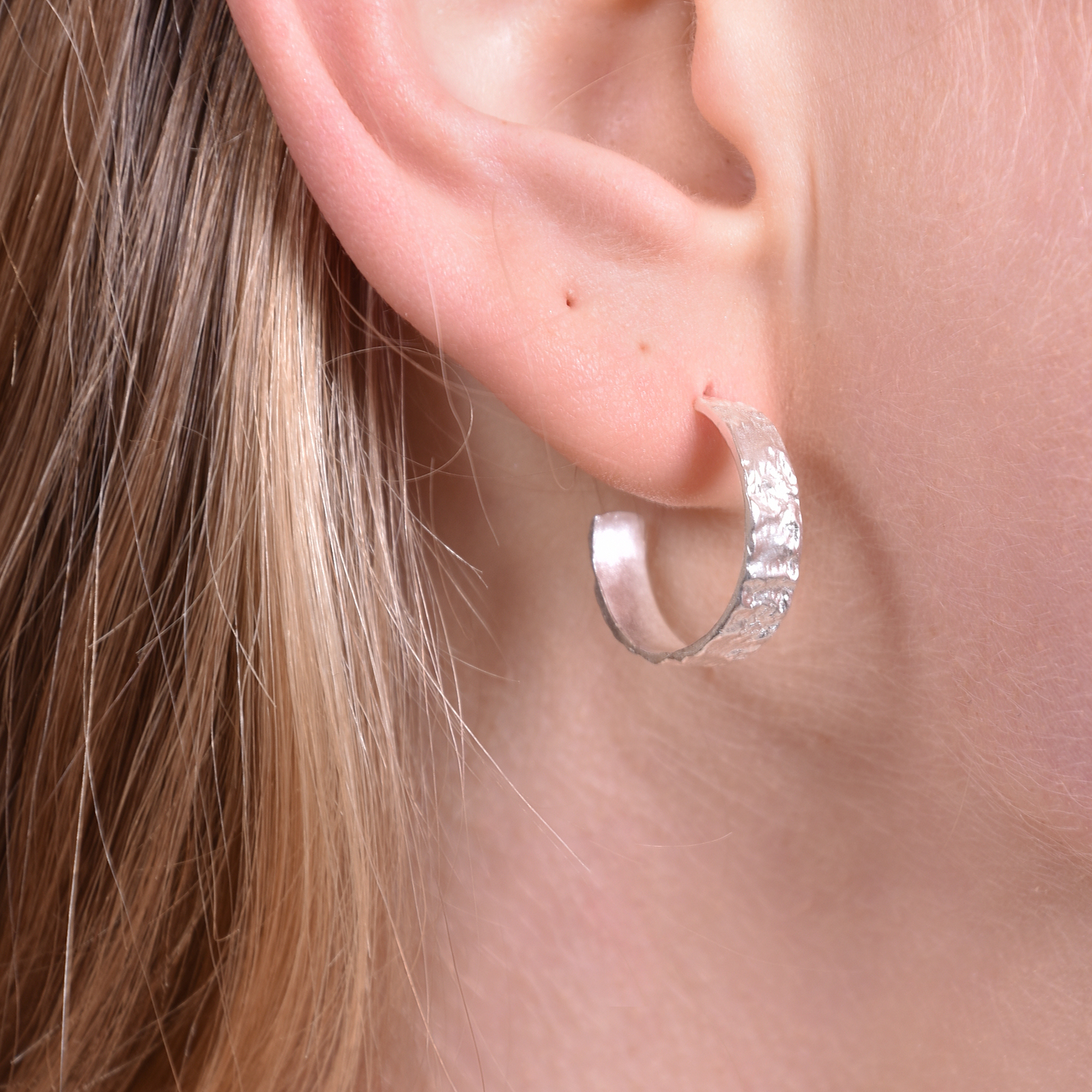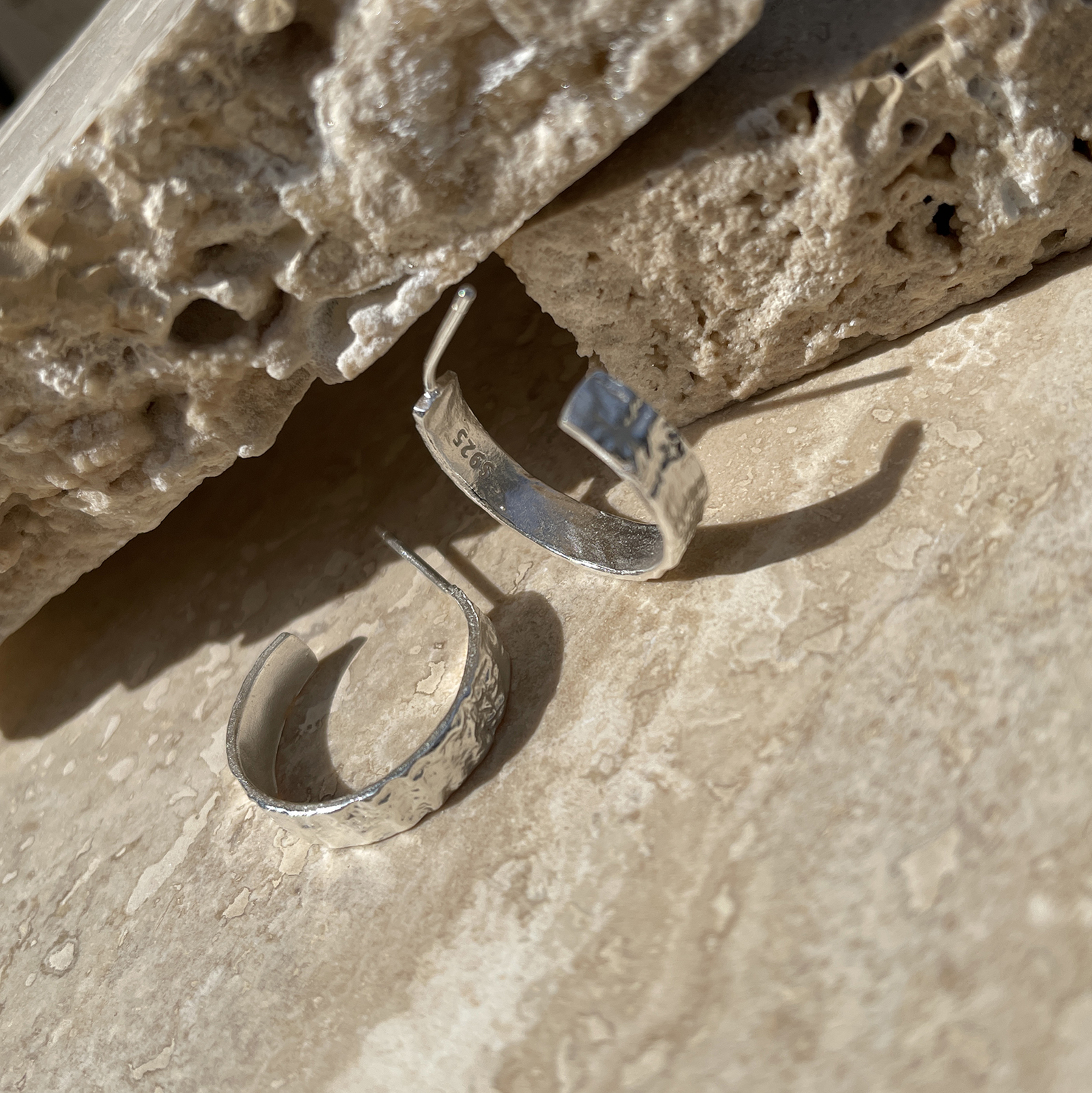 Contemporary, timeless and versatile for styling. Introducing Isador Textured C Hoop Earrings (Silver) - a raw style textured ear love to add a subtle uniqueness to your daily styling. Inspired by coastal cultures, this design features textured C hoops made of solid sterling silver with white rhodium plating to ensure durability and hypoallergenic wear. The earrings are of a comfortable weight for all day wearing. Suitable for all personal styles and for unisex wear. Hypoallergenic, nickel, cadmium and lead free.