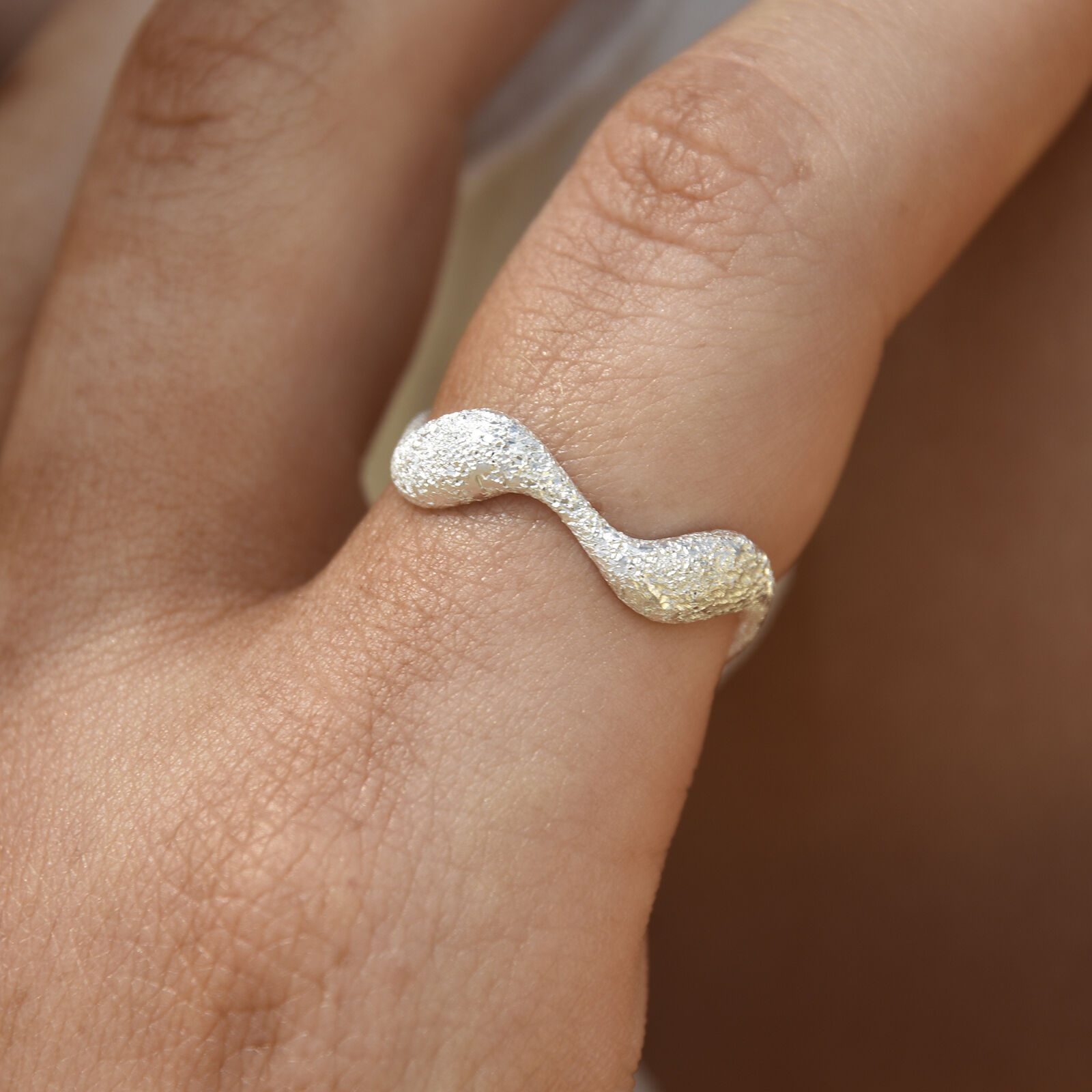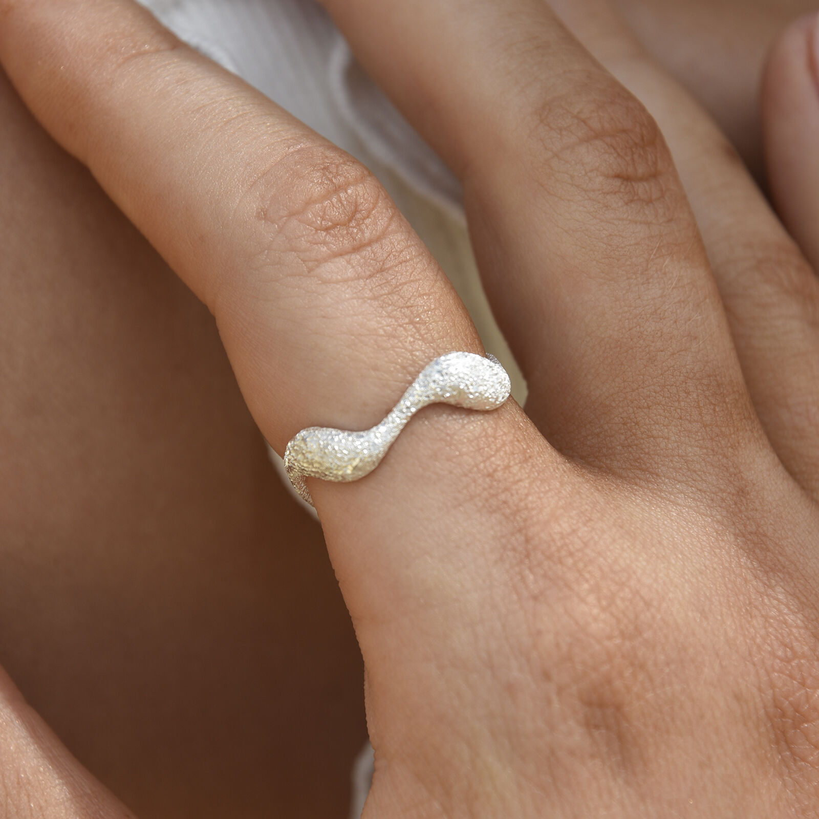 Leave lots of sparkles wherever you go (not just a little). Introducing Isaline Textured Wavy Open Ring (Silver) - a chic and elevated finger beauty to spark up your day. This design features a stippled texture wavy ring band that can be resized for preferred personal fit. This ring is made in solid sterling silver with precious white rhodium plating for hypoallergenic, enduring wear and a brighter silver shine. A trendy yet unique highlight on its own or mix and match with other rings to create your signature details. Suitable for modern, contemporary, chic, smart casual, casual, ring layering, everyday style and more. Hypoallergenic, nickel, lead, and cadmium free. Available in 18ct gold or silver.