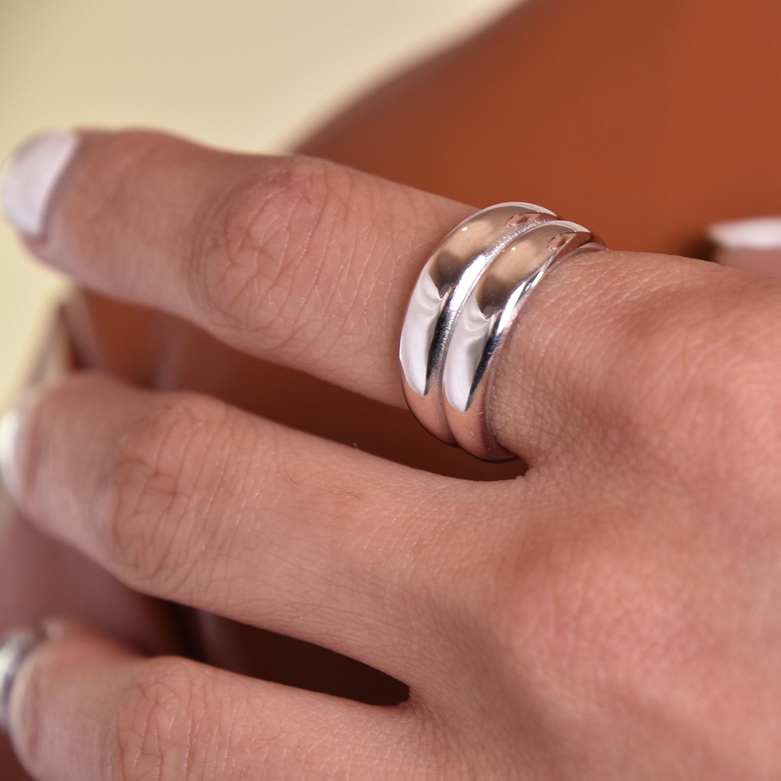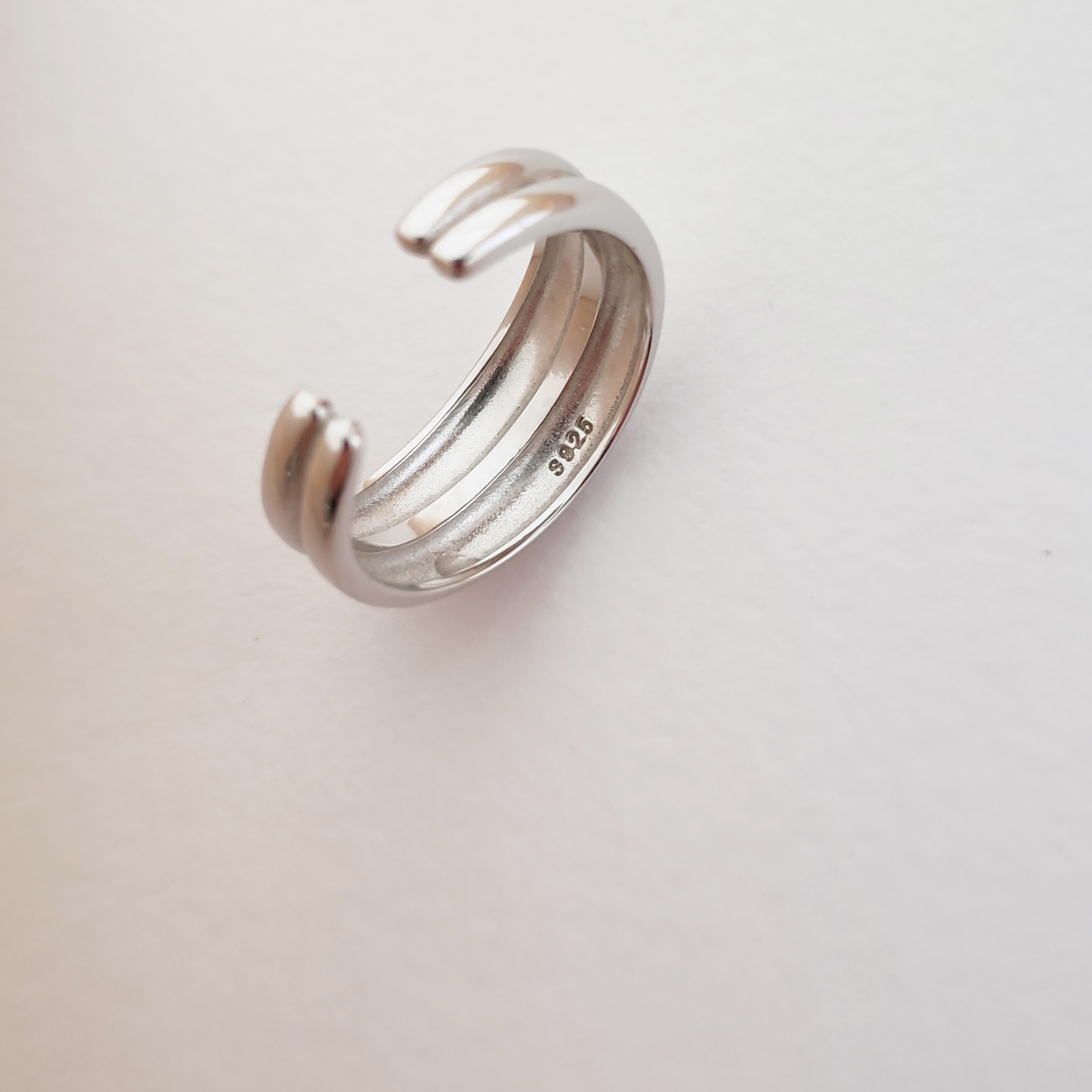 Modern simplicity in timeless silver. Introducing Jecelyn Double Rim Open Ring — a handcrafted open silver beauty that fits all personal styles. This ring is crafted in solid sterling silver (nickel free) with a subtle double rim feature, with a perfect balance of femininity and masculinity. It is fully resizable and adjustable manually (due to the softness of sterling silver) so you can adjust for the most perfect fit. Perfect for modern, chic, punk, bold, minimalist, high fashion, everyday styles and more. Hypoallergenic, nickel, cadmium and lead free.