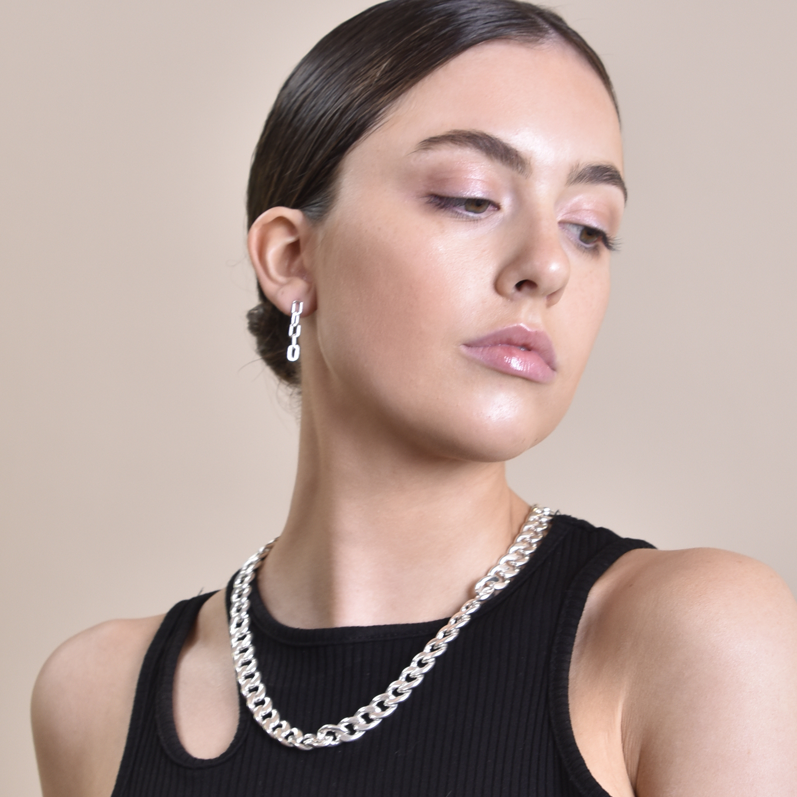 Stylish simple chain love for your elevated chic styling. Introducing Josie Minimalist Dainty Silver Chain Earrings - a contemporary chain style earring for lovers of simplicity and style. This design features dainty link chain drop earrings made in solid sterling silver with smooth polishing. They are also of a comfortable weight for all day wearing. A delicate ear drop with a subtle strength, perfect for modern, chic, punk, minimalist, earring layering, earring mismatching, smart casual, casual, everyday style and more. Also suitable for unisex wear. Hypoallergenic, nickel, cadmium and lead free.