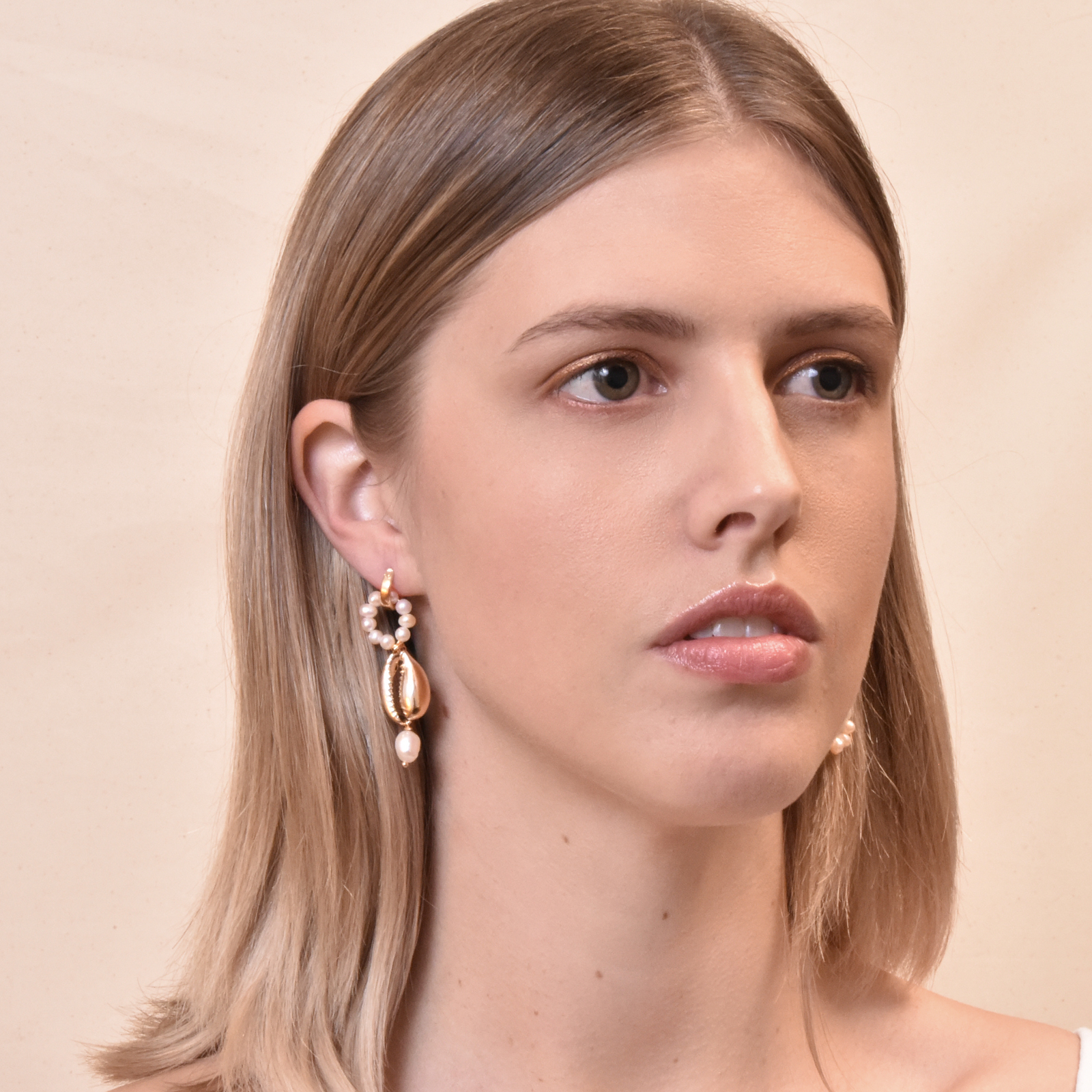 Bring 'Girly Pearly' to another level! Keira Mismatching Coastal Muse Earrings are such a sweet and cute multi-element coastal style that makes your everyday styling a totally enjoyable experience. This design comes with a 'huggie drop' and a 'stud drop' along with small freshwater pearls. You can wear 2 pieces on one ear or 1 piece on each ear. Be creative and think outside the box!