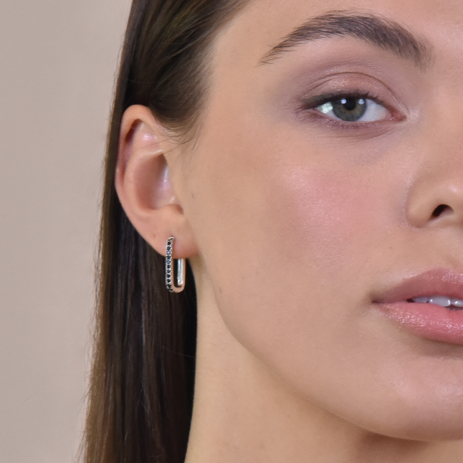 Succinct, chic with a modern punch. Introducing Kendra Dainty Silver Huggie Earrings - a modern minimalist style ear love for dainty style lovers. This design features oval-shaped huggies with the front side embellished with black zirconias. The earrings are made of solid sterling silver ensuring hypoallergenic wear. Perfect for modern, minimalist, chic, punk, earring multilayering, mismatching, Nordic, casual, everyday styles and more. Hypoallergenic, nickel, cadmium and lead free.