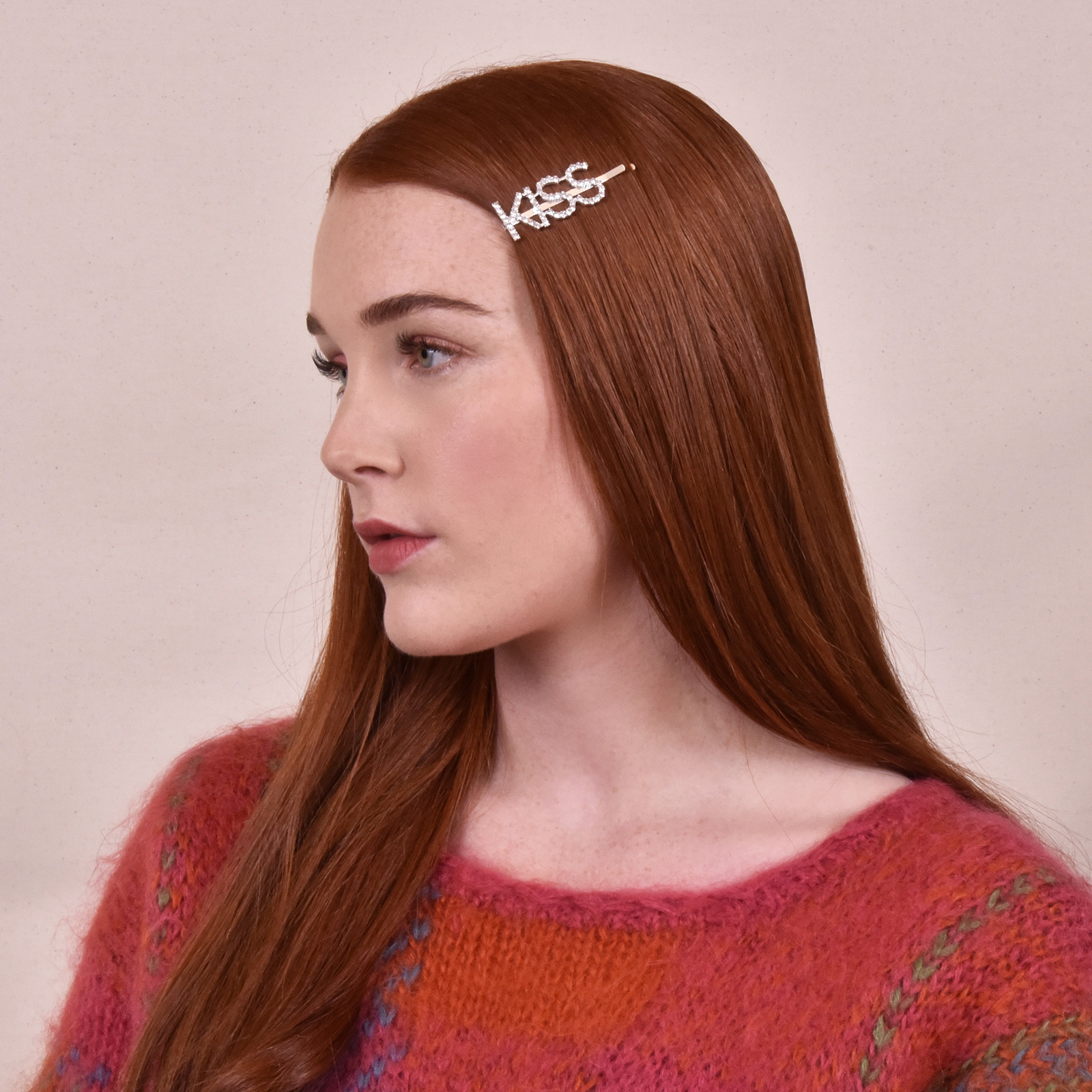 - Modern fashionista rhinestone letter hair clip - Metal in silver colour - Length 6.3cm; Width 2cm; Weight 8g