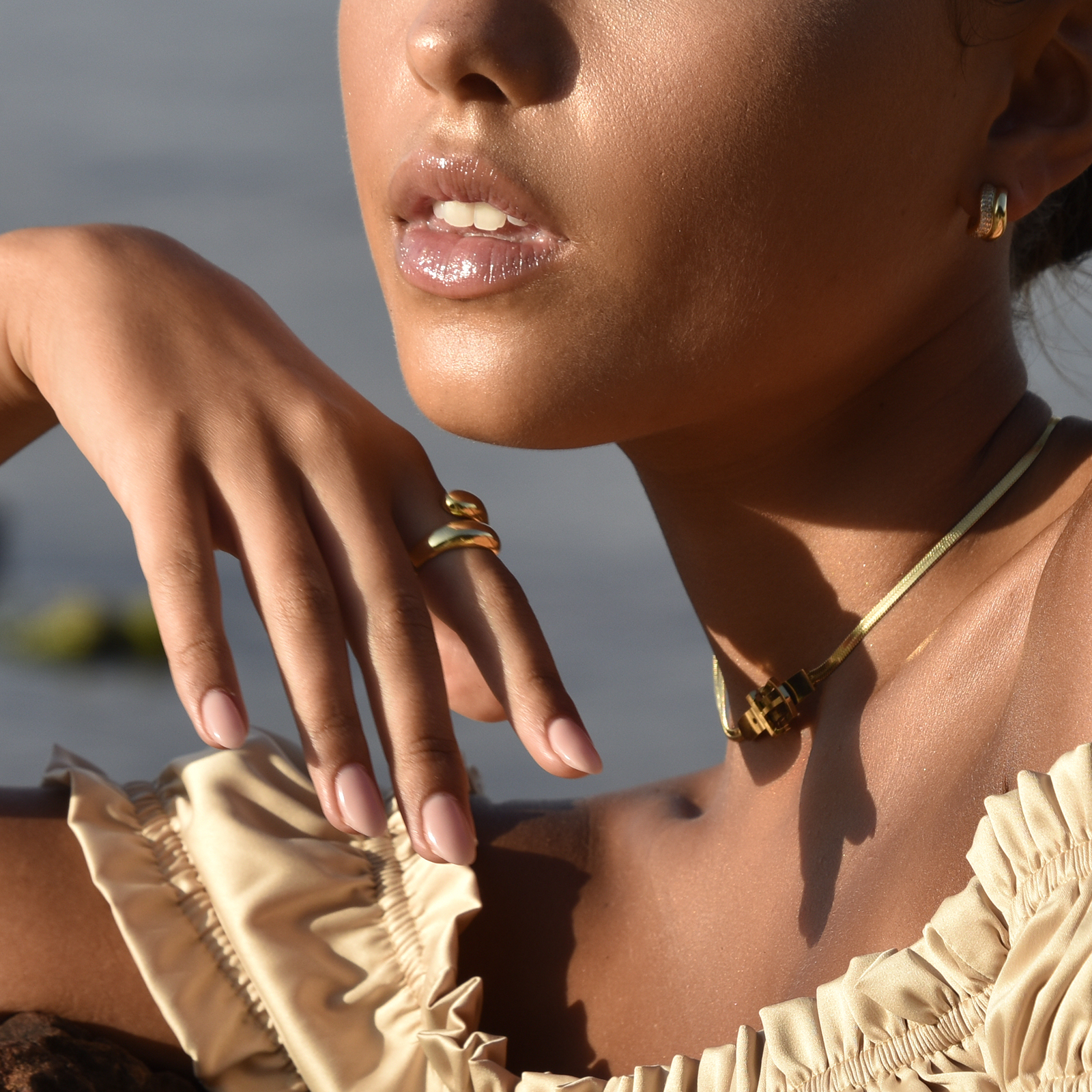 Contemporary, chic, and versatile for styling. Introducing La Frankie Finger Wrap Open Ring - an on-trend finger beauty with an artsy fling. This design features a wrapping style ring band with the two ends rounder and chunkier than the rest. This ring is made in solid sterling silver with 2.5 microns of 18K gold plating (to Gold Vermeil Jewellery Standards) for a rich and noble gold shine. This ring is also smoothly polished to a reflective high shine. A modern and stylish finger highlight to wear anywhere at anytime. Suitable for all personal styles and for dress ups and dress downs. Hypoallergenic, nickel, cadmium and lead free.