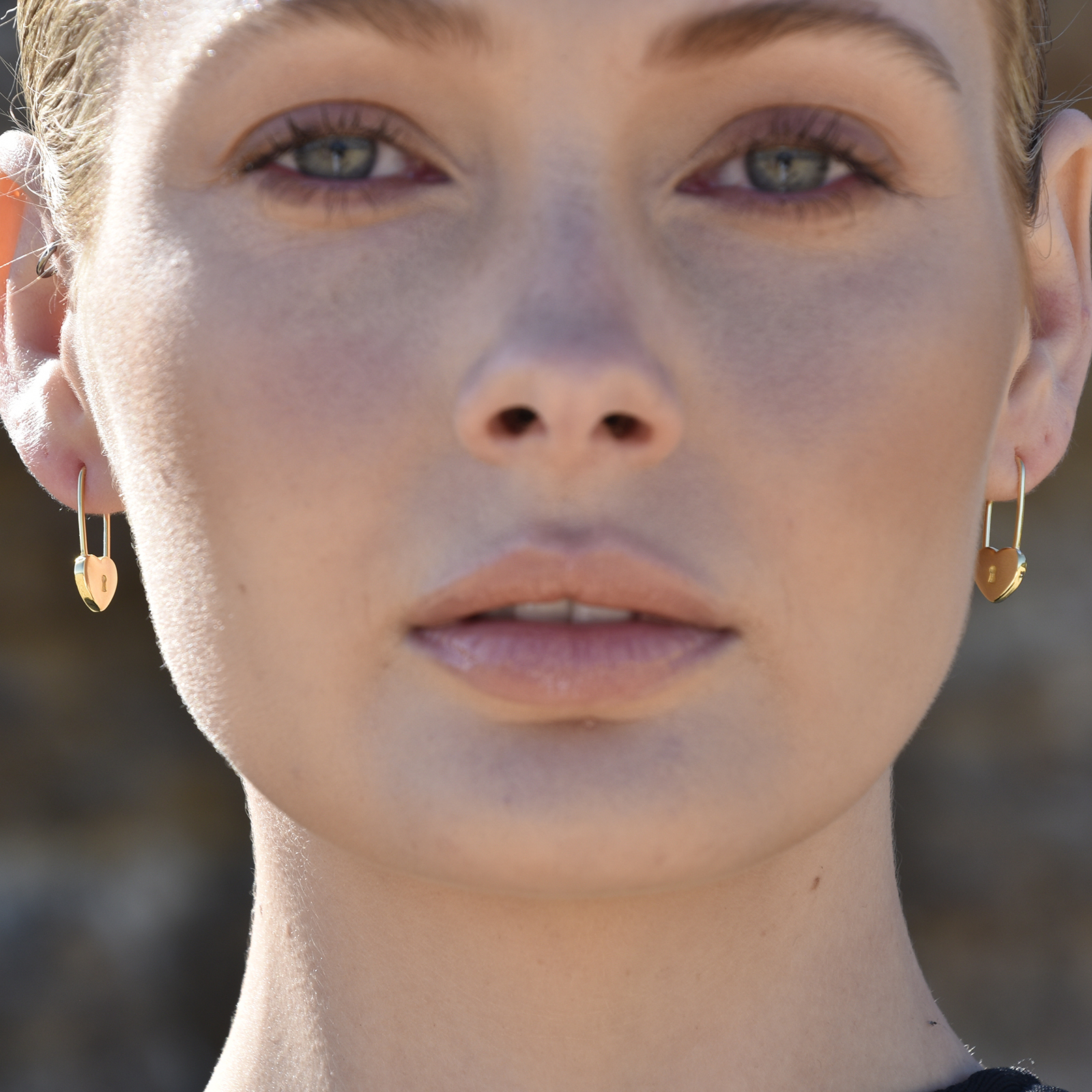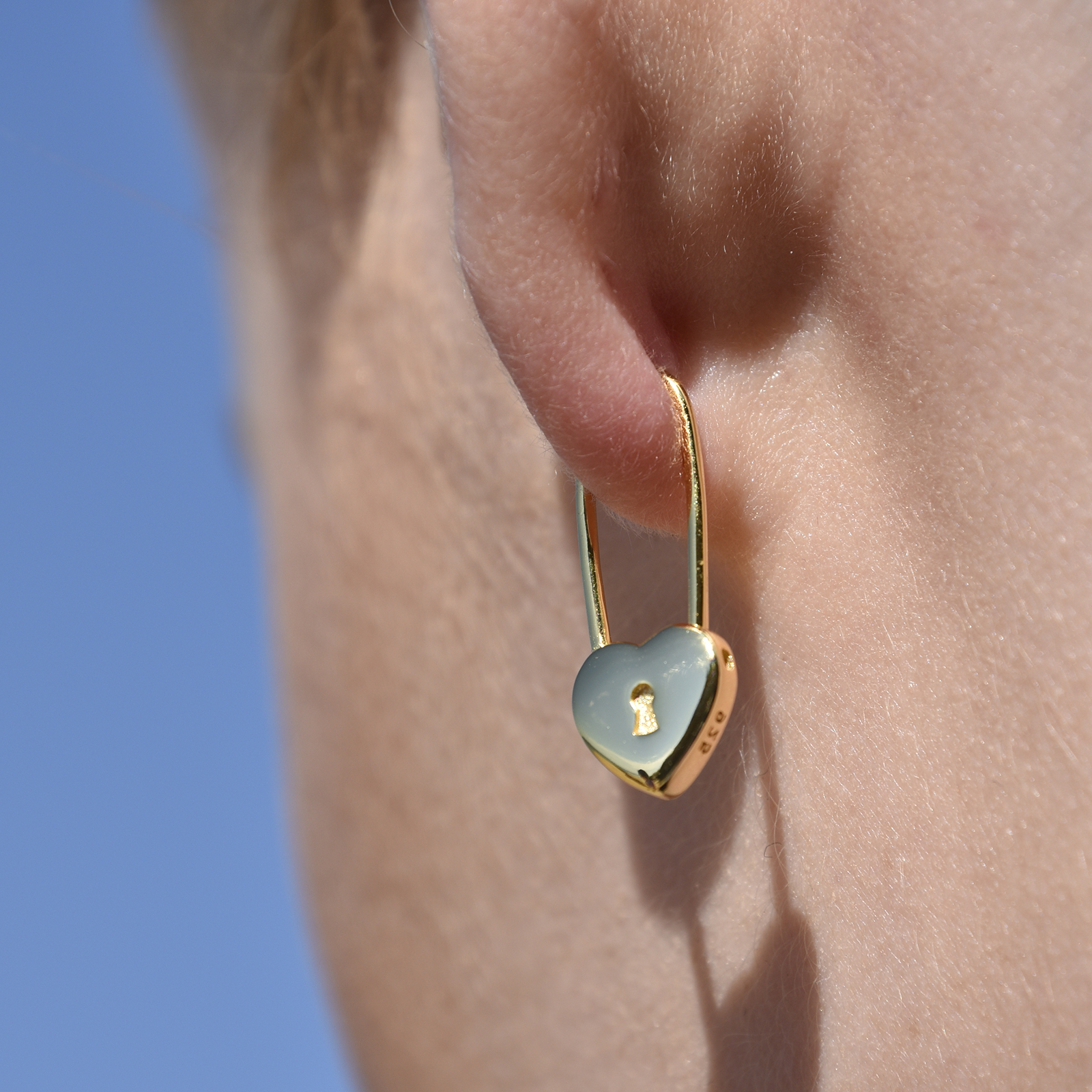 Simple, trendy with a subtle edginess. Introducing Lark Love Heart Padlock Earrings (Gold) - a stylish and light-hearted ear love for your elevated everyday chic styling. This design features a solid padlock drop with a long oval pin closure. The earrings are made in solid sterling silver with 2.5 microns of quality 18K gold plating for enduring and hypoallergenic wear. Perfect for modern, chic, artsy, minimalist, punk, earring layering, smart casual, casual, everyday styles and more. Hypoallergenic, nickel, cadmium and lead free.