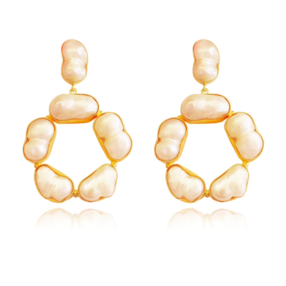 Made from: Natural Baroque Pearls22K Gold PlatingEnvironmentally Friendly Brass